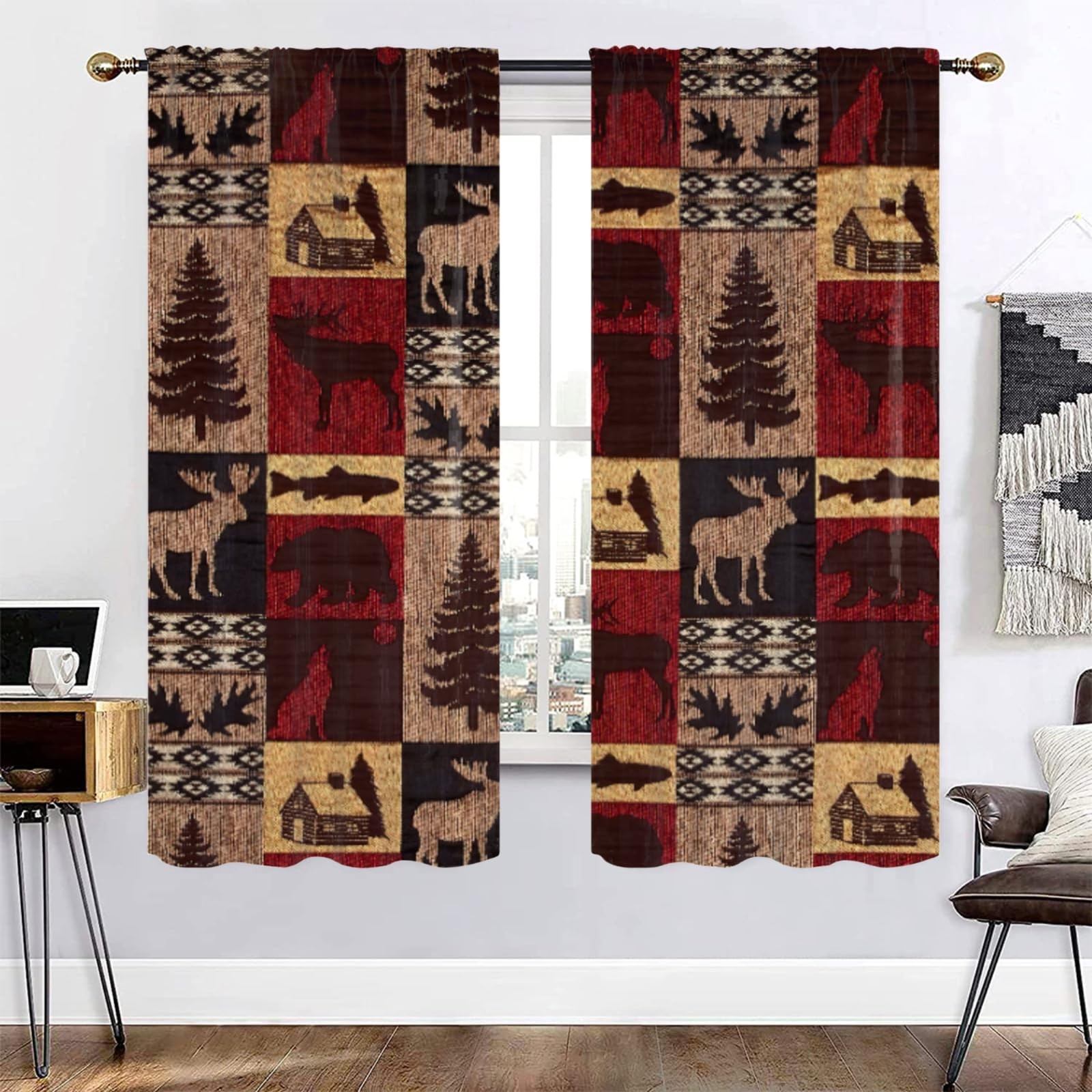Rustic Cabin Curtains for Bedroom,Vintage Farmhouse Theme Curtains Moose Bear