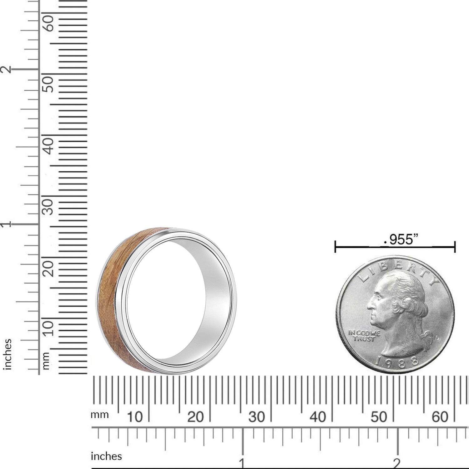 как выглядит Mens Stainless Steel Flat Edge Ring with Whisky Barrel Wood Inlay and Clear Res фото