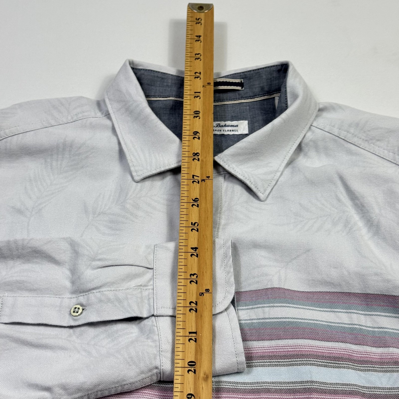 как выглядит Tommy Bahama Shirt Mens XL Gray Canyon Beach Flannel Stripe Palm Button Front фото