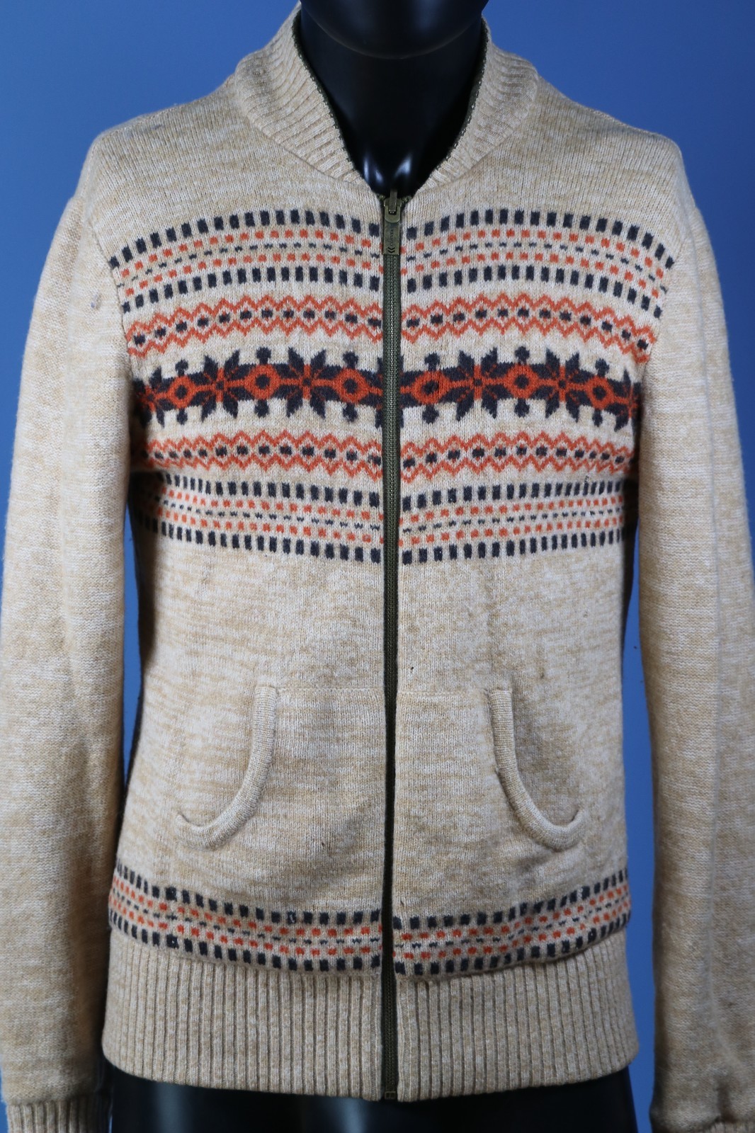 как выглядит Converse John Varvatos Wool Zip Sweater M Beige Black Red Pattern Bomber Style фото