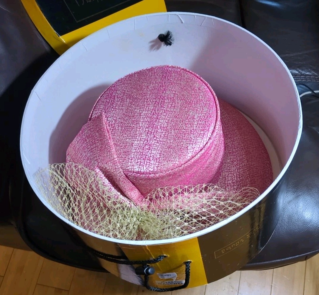 как выглядит Vintage Donna Vinci Couture Hat, Magenta With Bow And Box фото