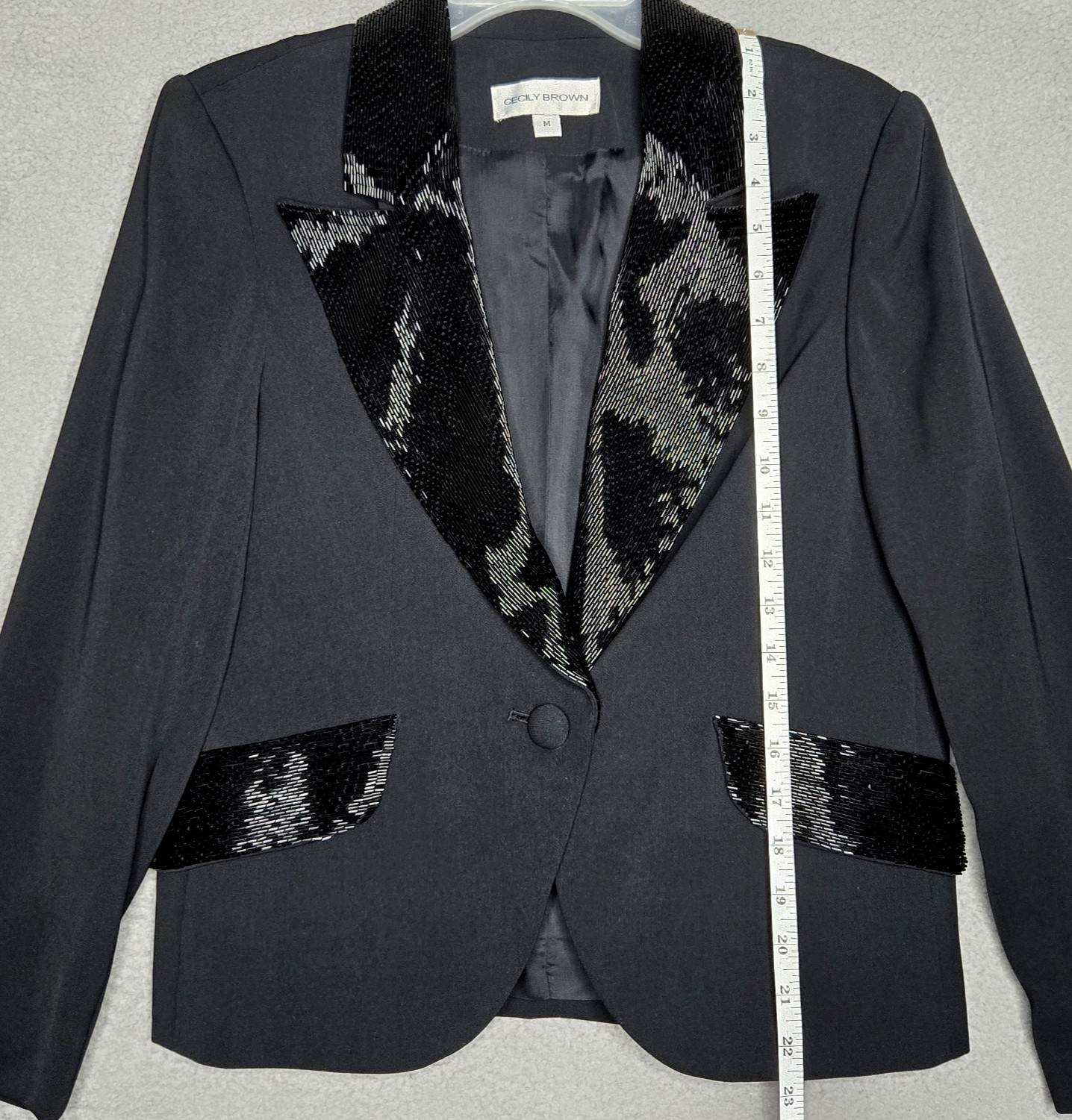 VTG Cecily Brown Tuxedo Style Evening Formal Jacket - Black Beaded - Women's M