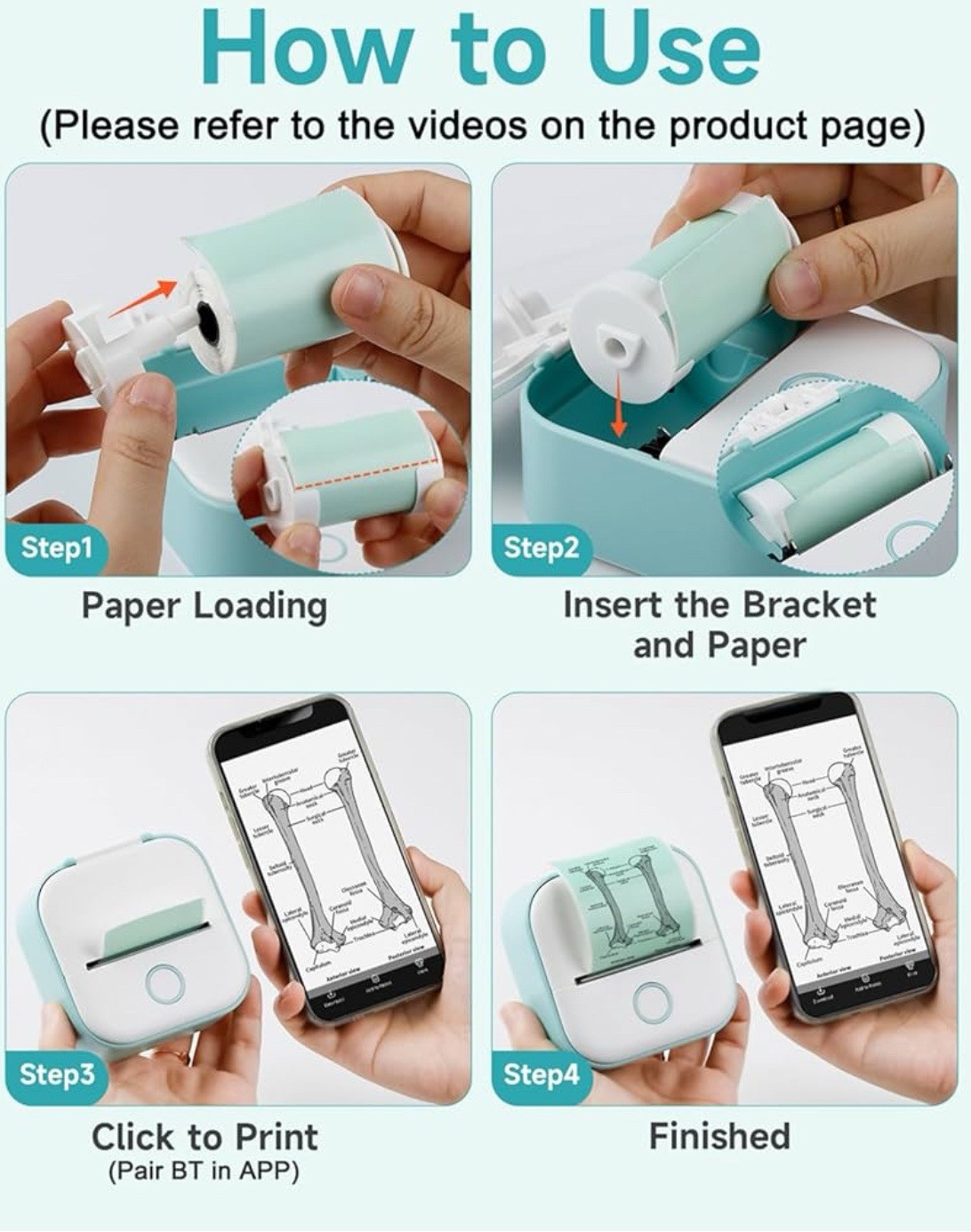 Phomemo T02 Pocket Wireless Bluetooth Thermal Printer Label Maker - Rare Blue