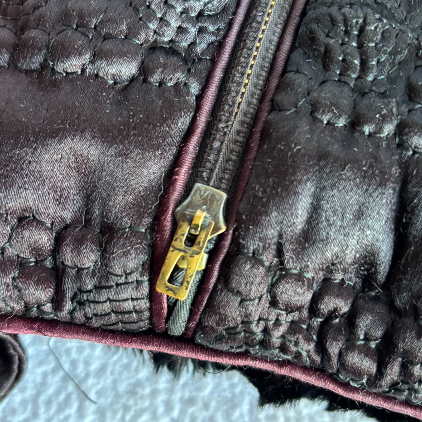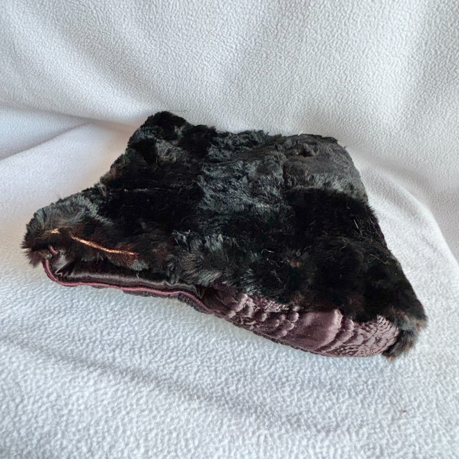 Vintage 1930s 1940s Black Fur Muff Hand Warmer with Zip Pocket