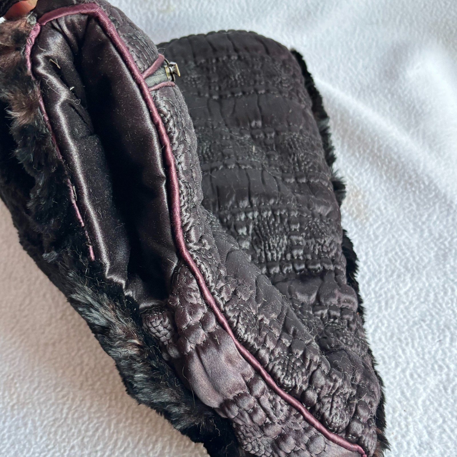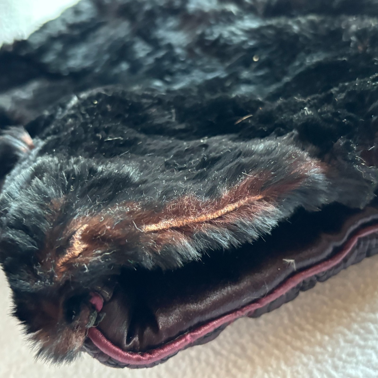 как выглядит Vintage 1930s 1940s Black Fur Muff Hand Warmer with Zip Pocket фото
