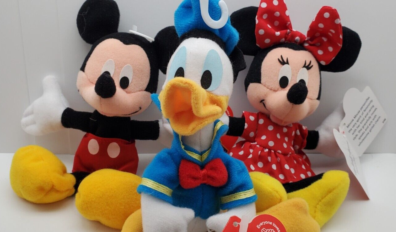 Disney Mickey, Minni, Donald Duck For Kids Bean Bag Plush 1998 Applause