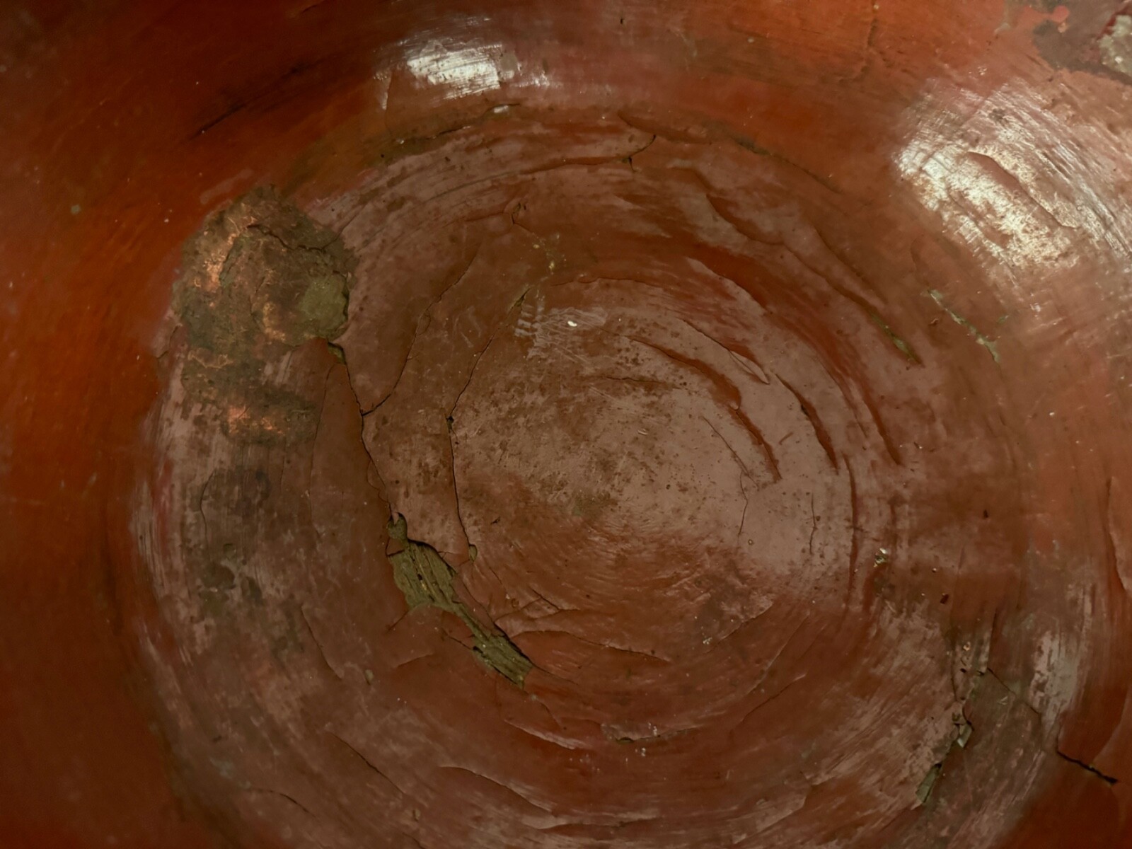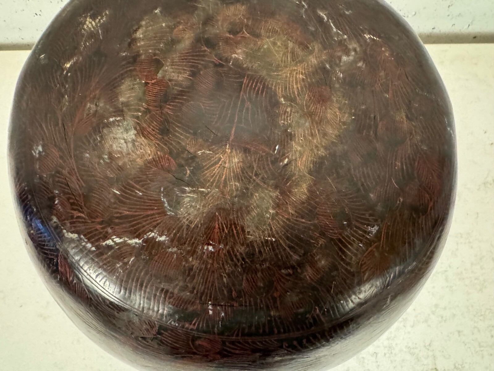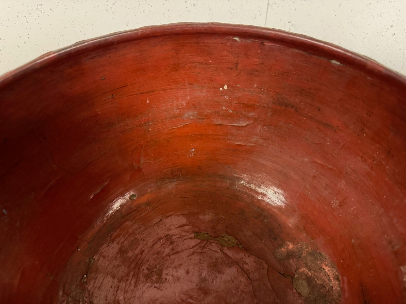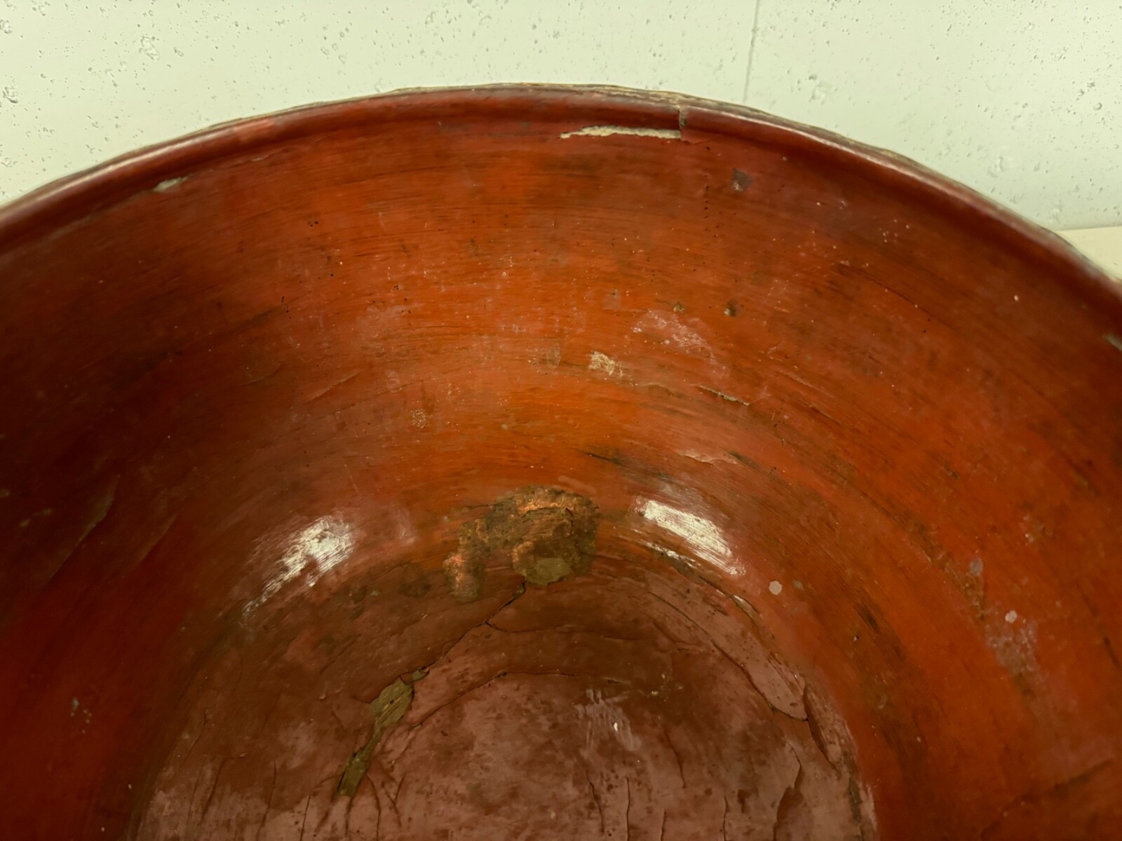 • Vintage Large Round Wooden Bowl w/ Painted Flowers Foliage Decoration