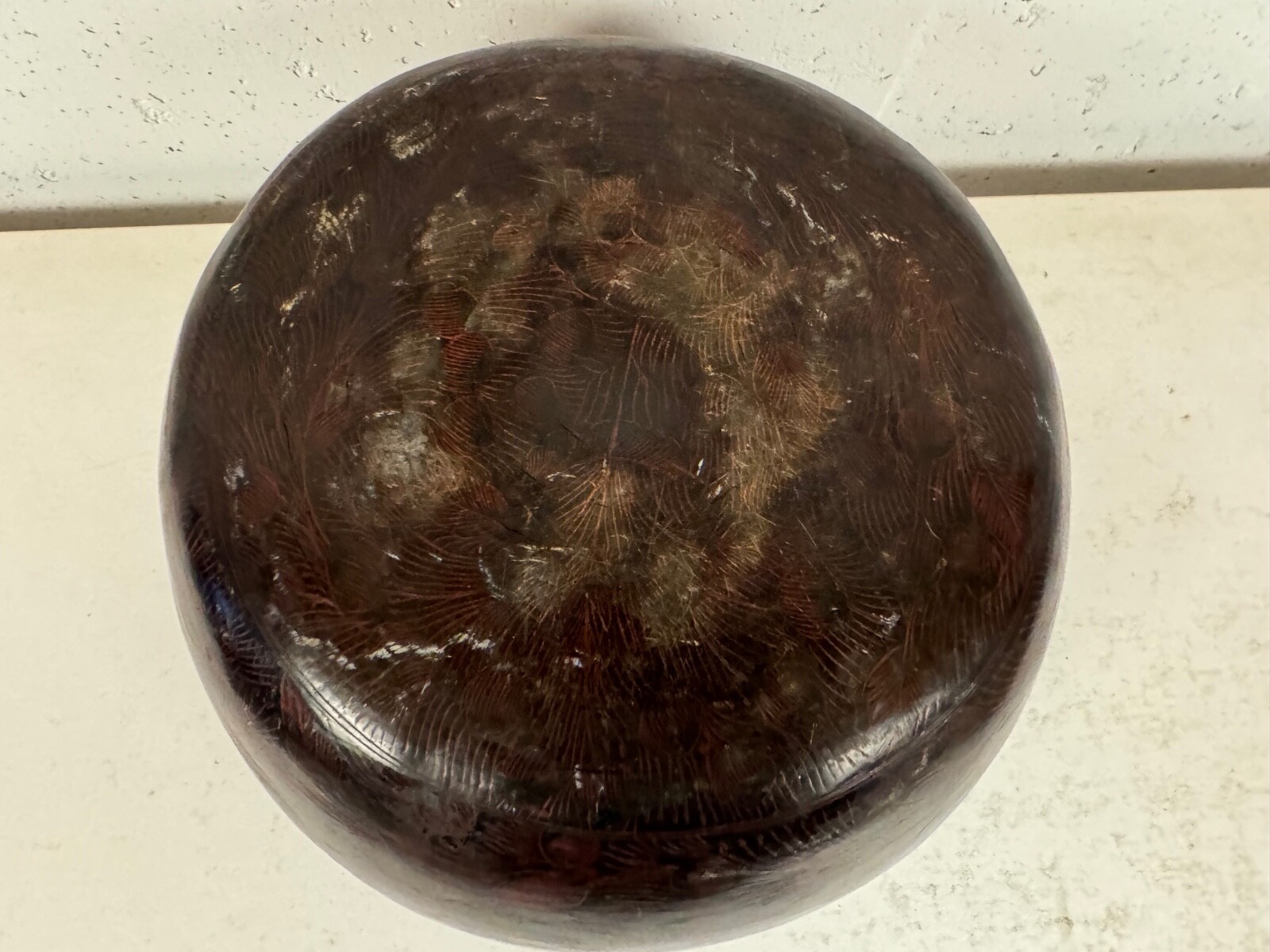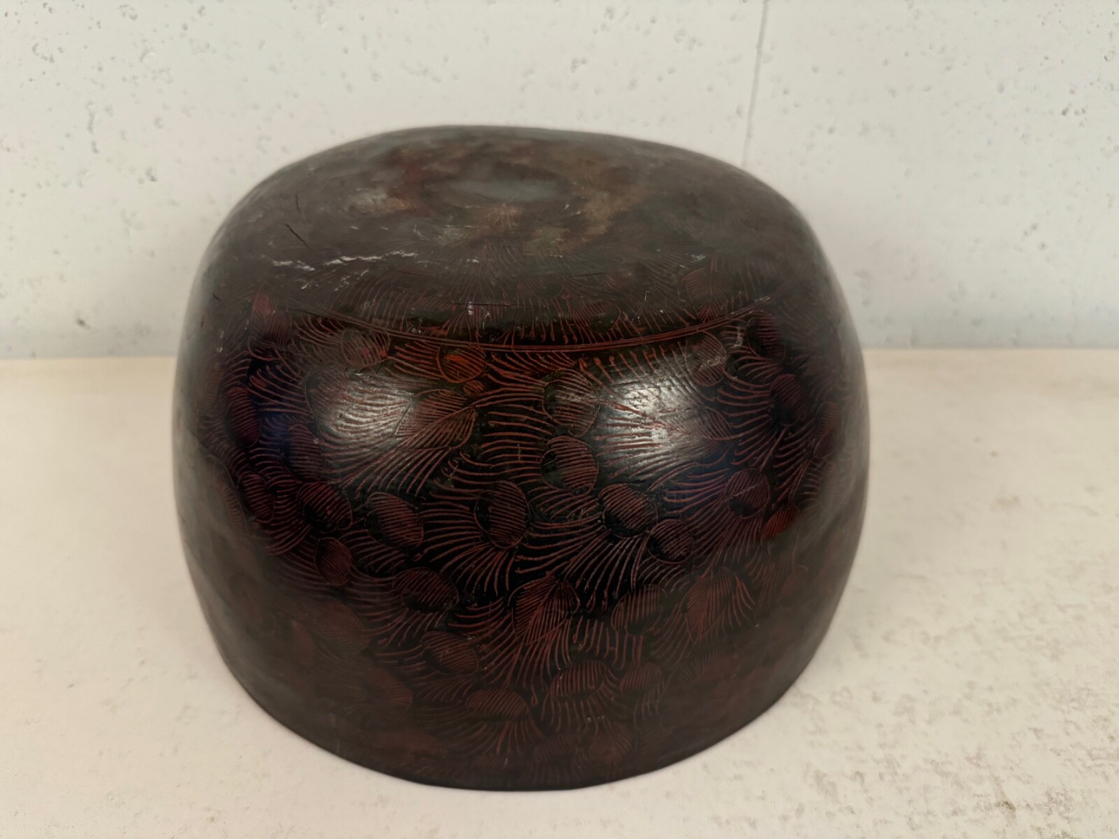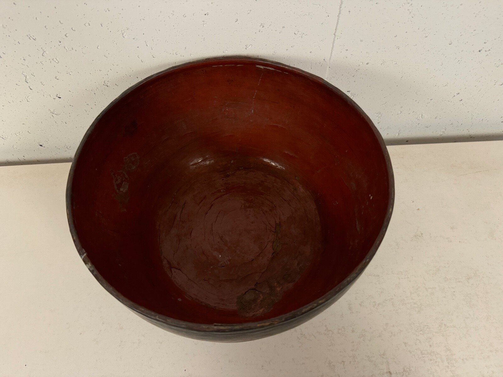 как выглядит Vintage Large Round Wooden Bowl w/ Painted Flowers Foliage Decoration фото
