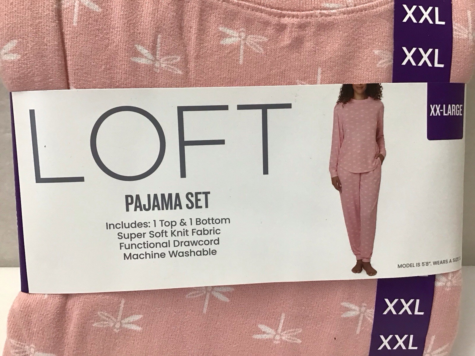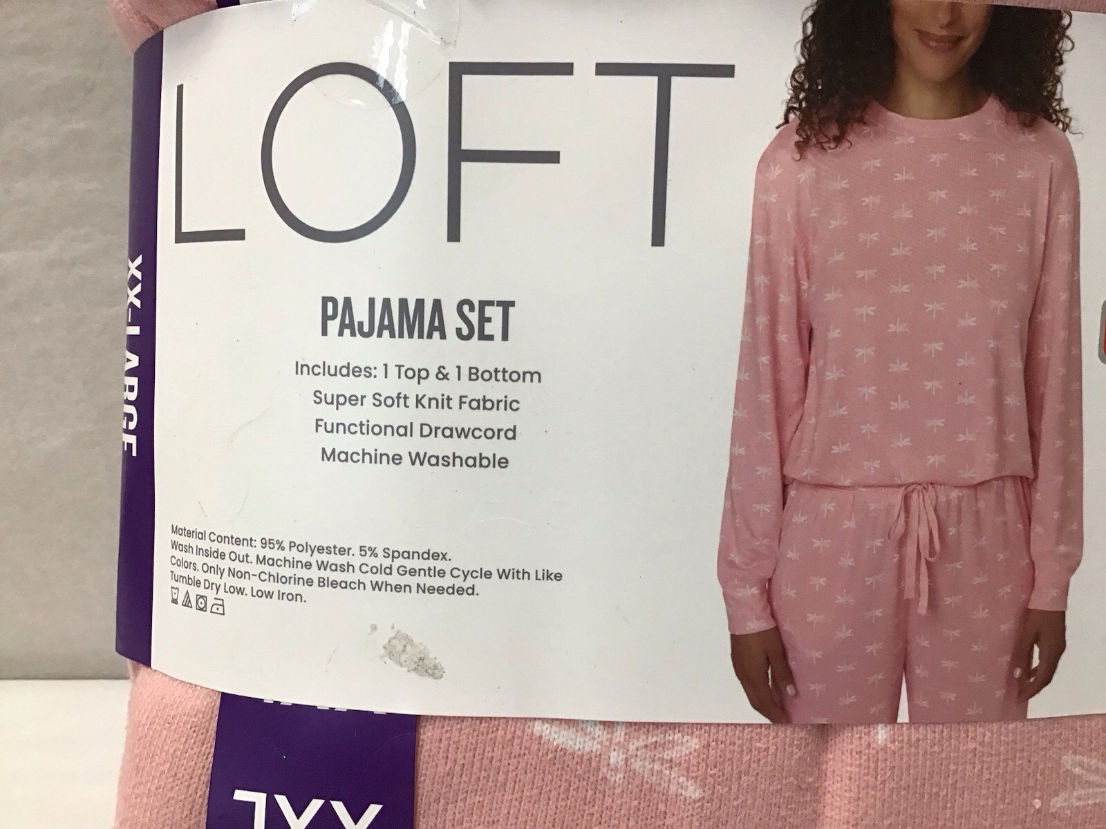 New Loft Pink 2XL Soft Knit Long Sleeve Top Pant Henley Sleep Set PJ C7-12