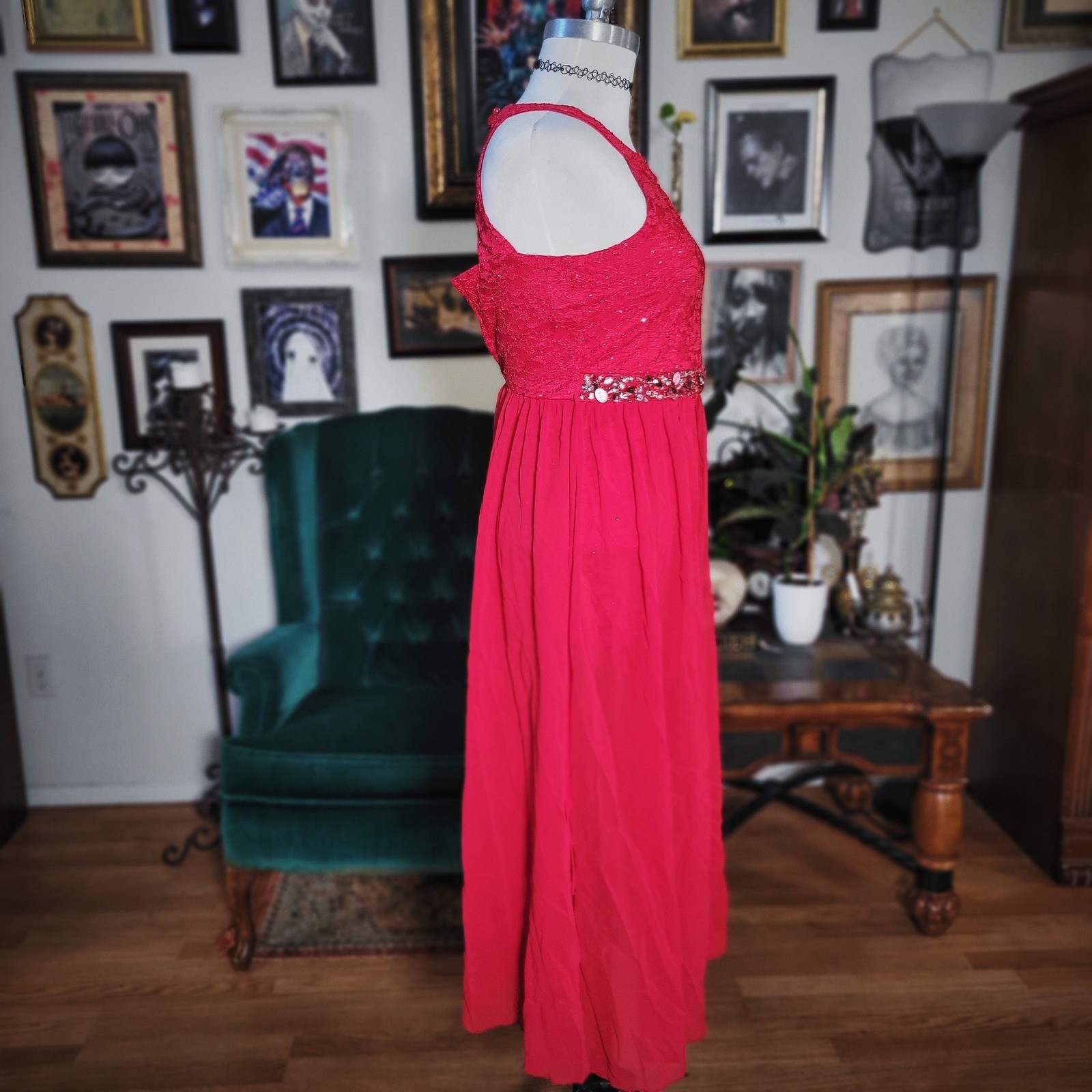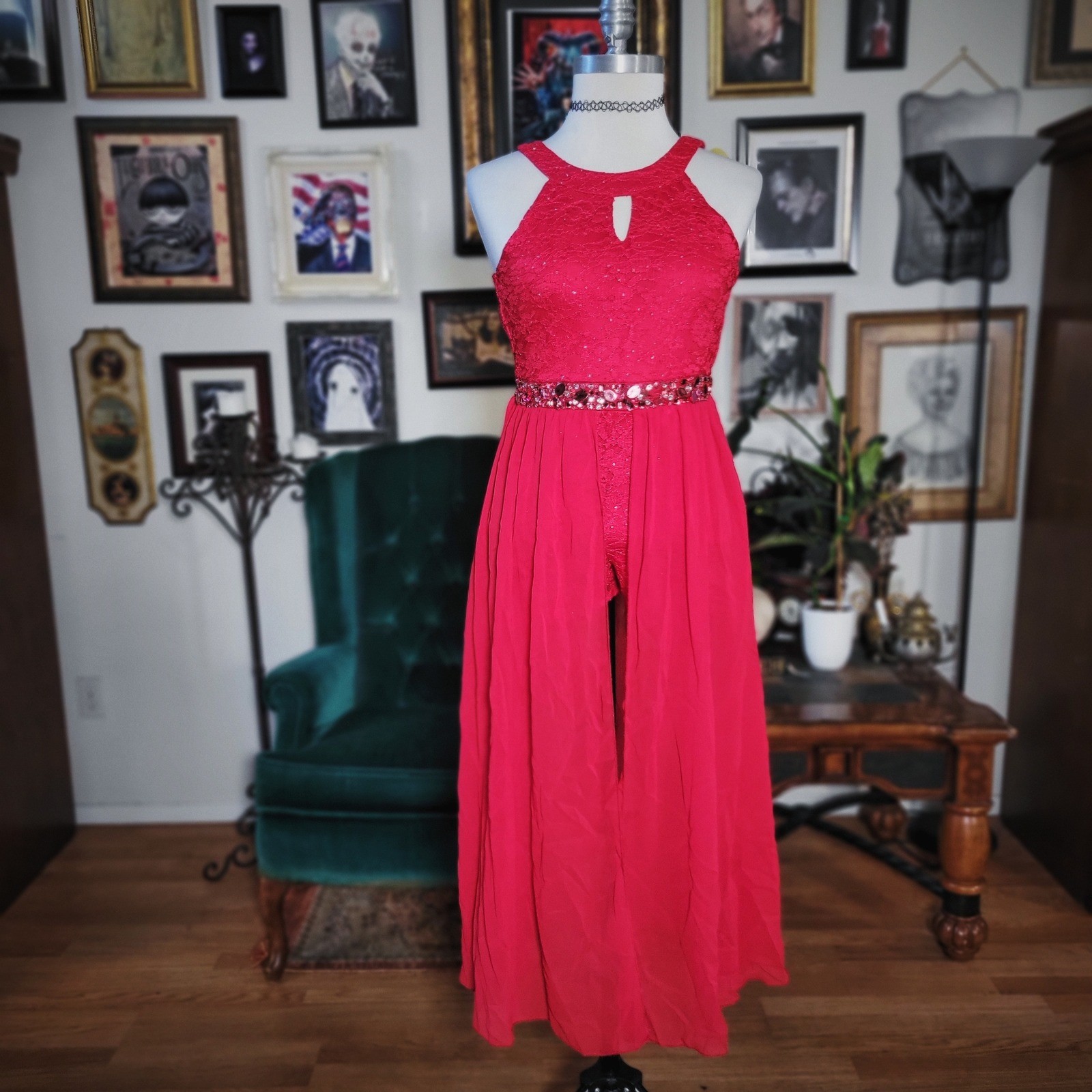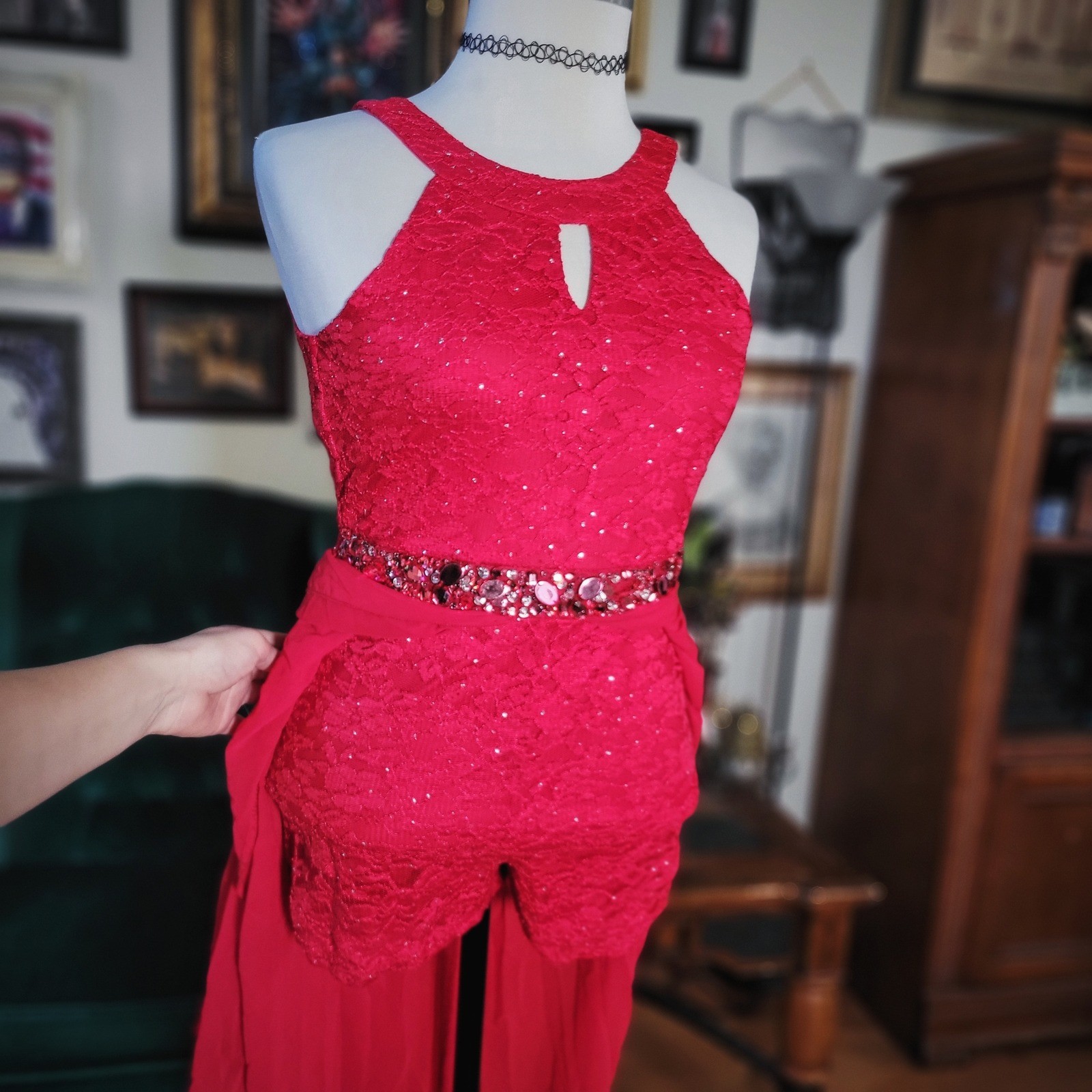 как выглядит Speechless Kids Red Lace Halter Romper with Skirt Overlay Size 14 фото