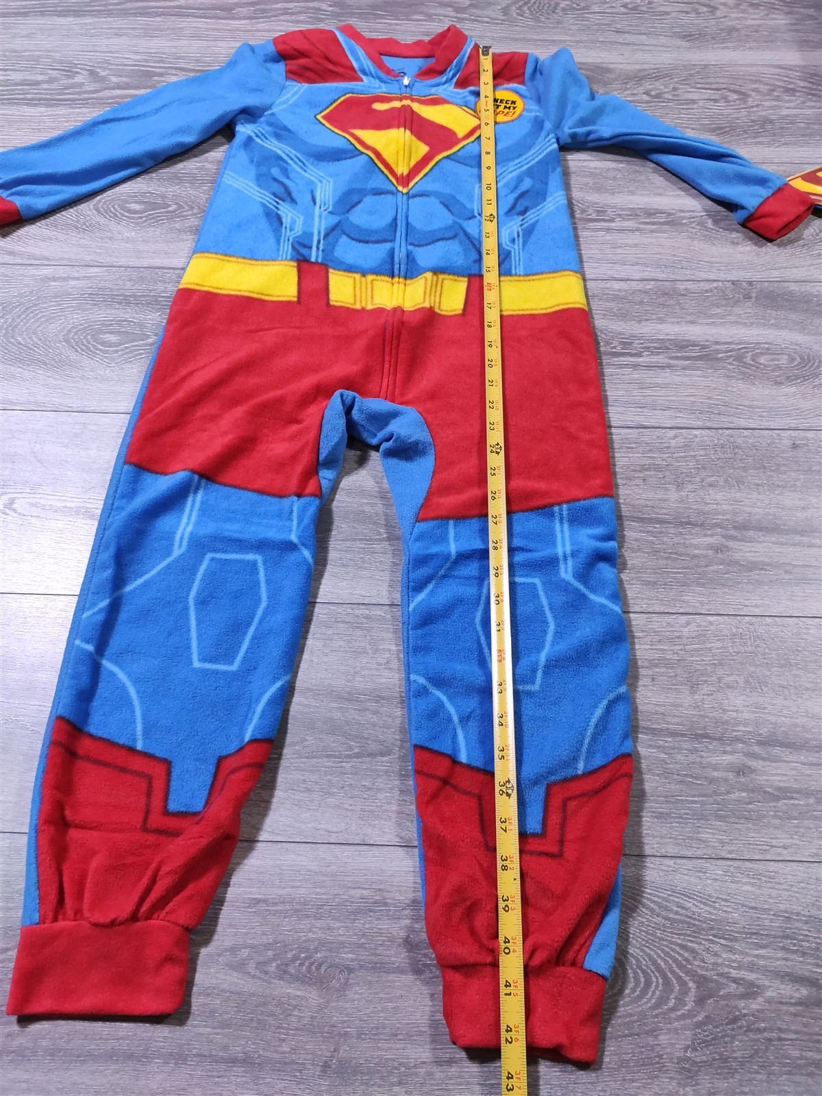 как выглядит Superman Pajamas Boys Medium 8 Blue Superhero Costume Cape One Piece PJs Kids фото