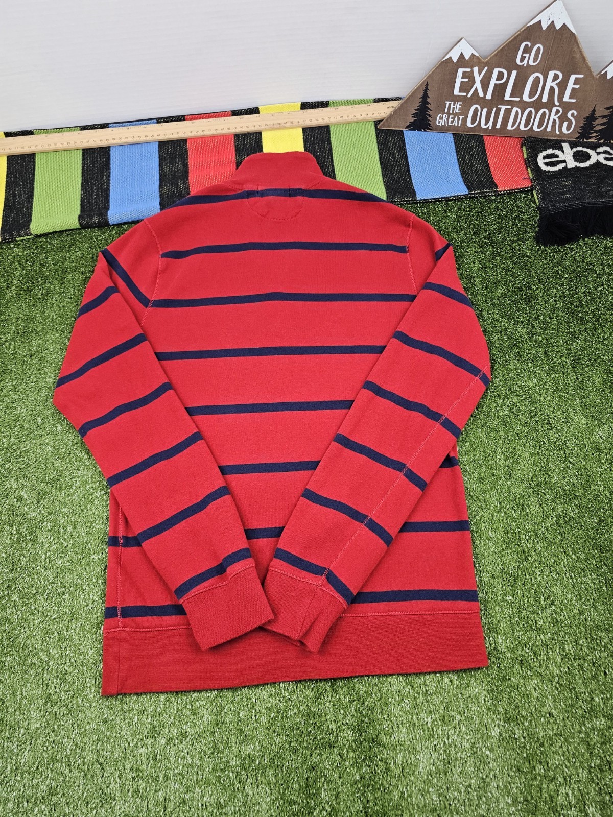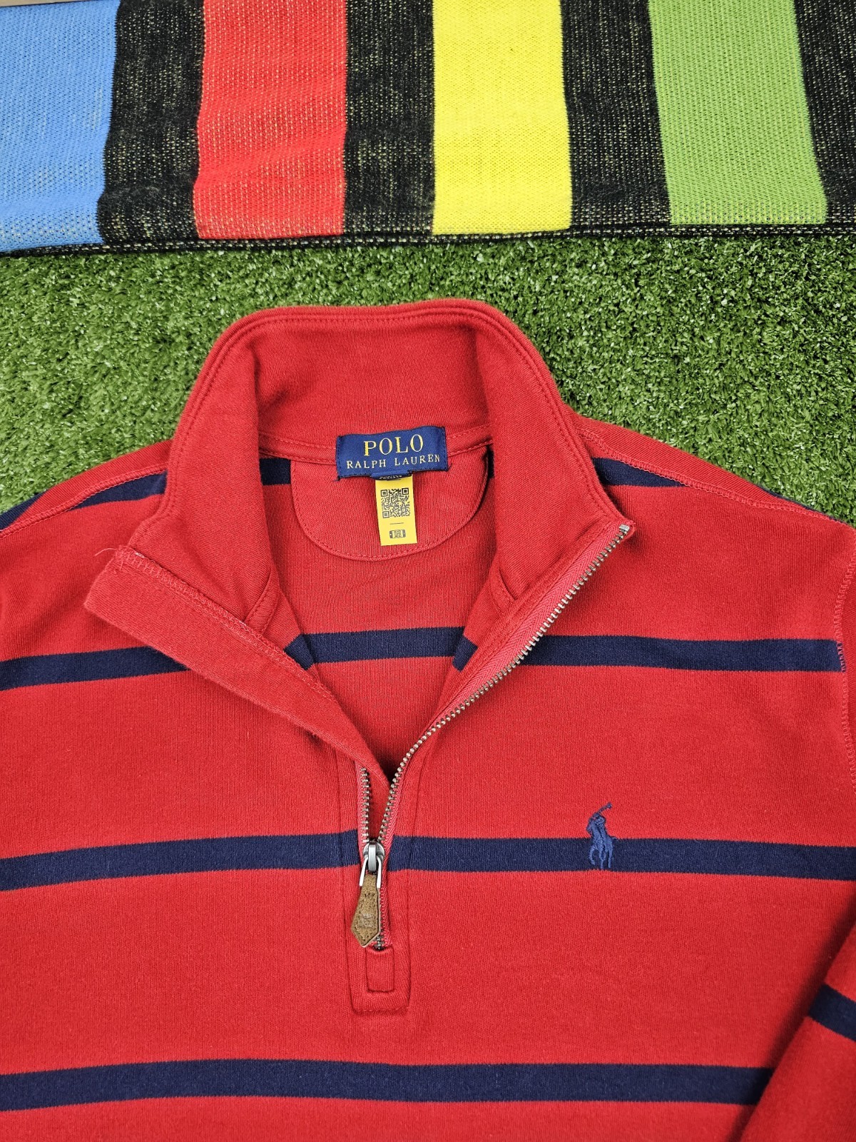 как выглядит polo ralph lauren youth 1/4 zip pullover sweater XL 18-20 red navy stripes фото