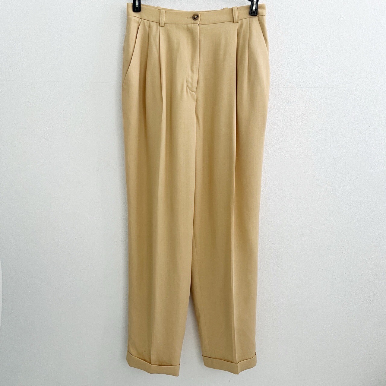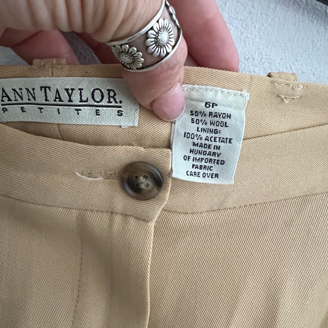 Vintage Wool Pants Beige Petite 6P Cuffed Pleated Hungary Ann Taylor Womens VTG