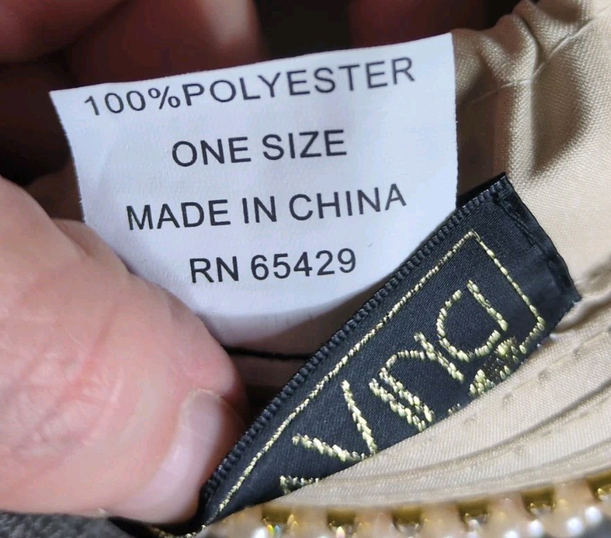 Vintage Donna Vinci Couture Hat Beige, Pearl Rhinestone Detailing, With Box