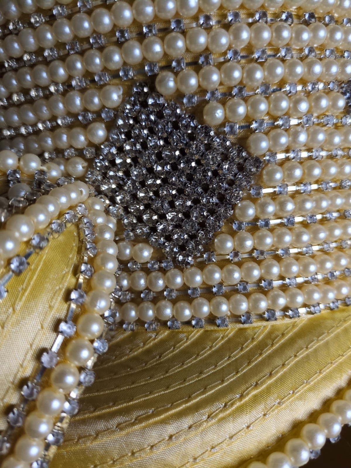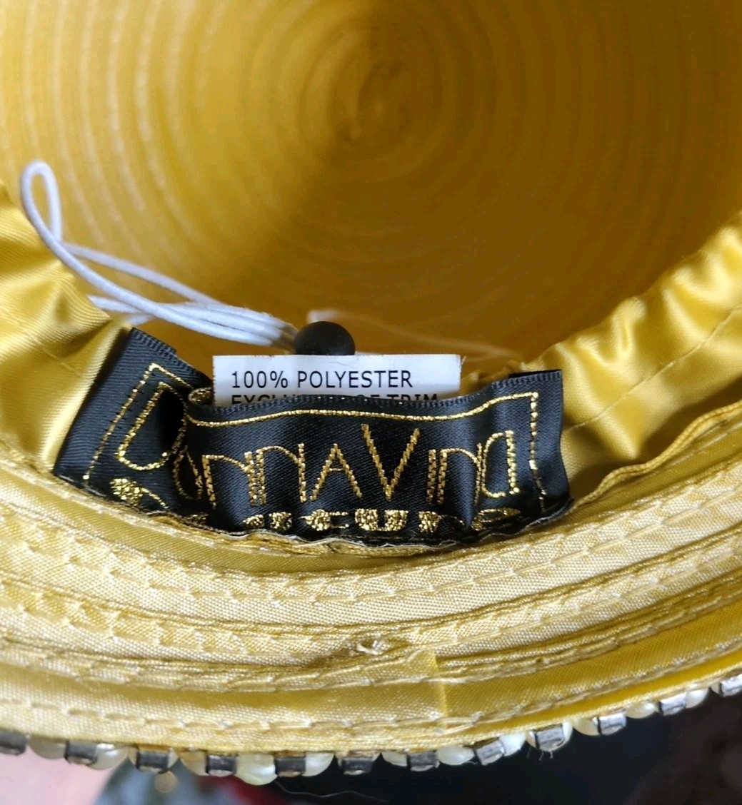 как выглядит Vintage Donna Vinci Couture Hat Banana, Heavy Pearl, Rhinestone Detail, With Box фото