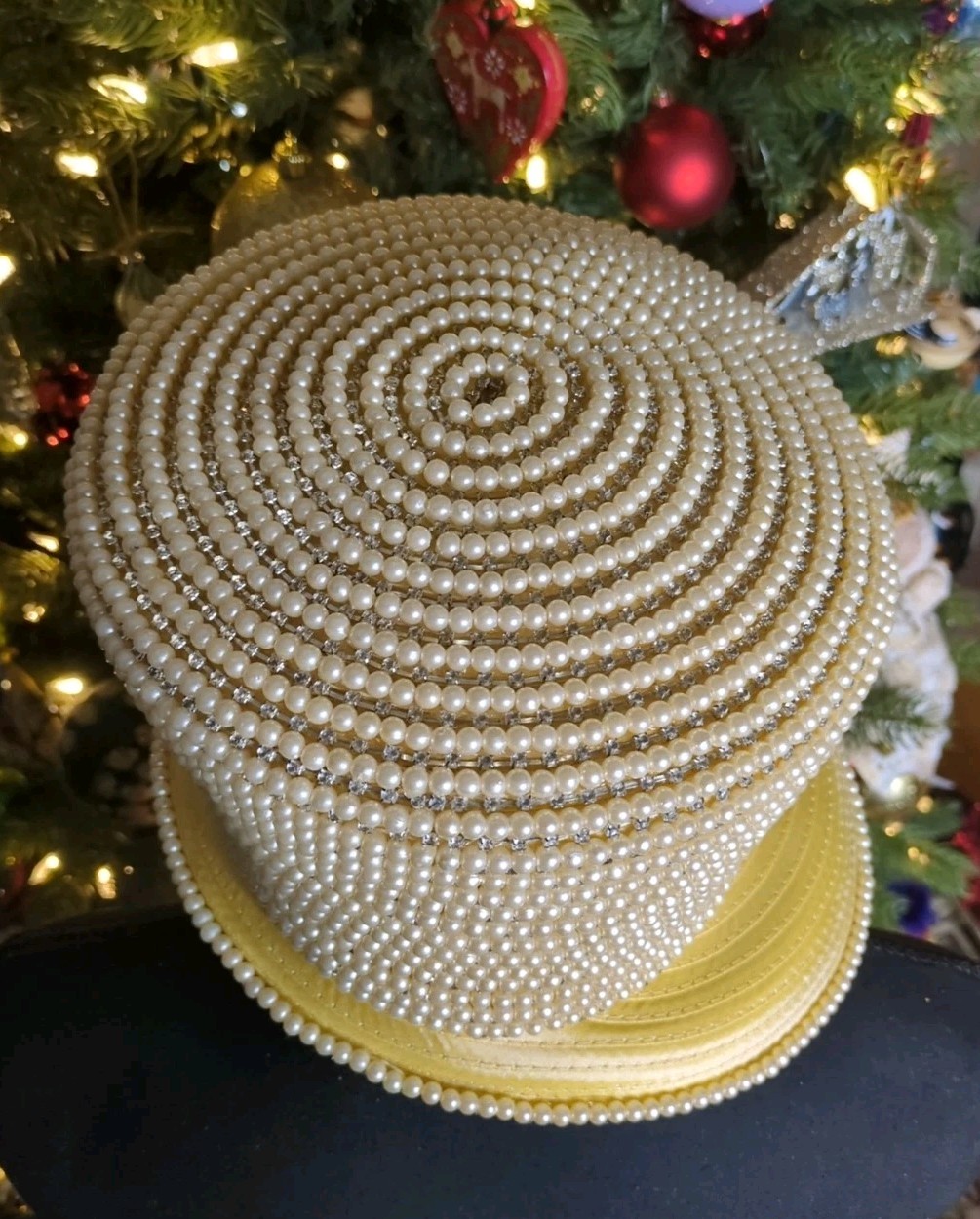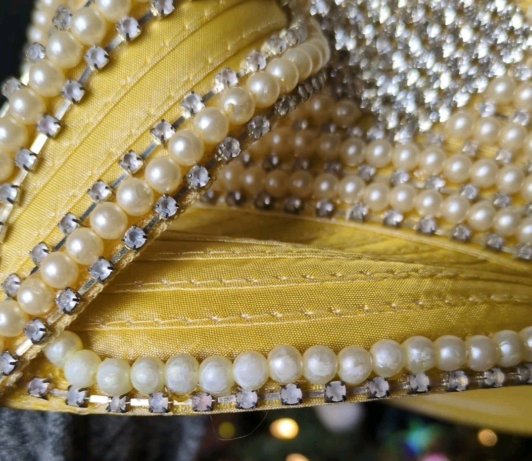 Vintage Donna Vinci Couture Hat Banana, Heavy Pearl, Rhinestone Detail, With Box