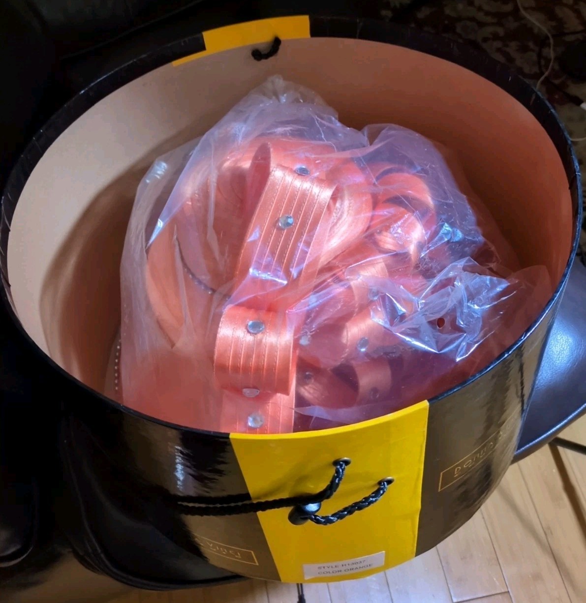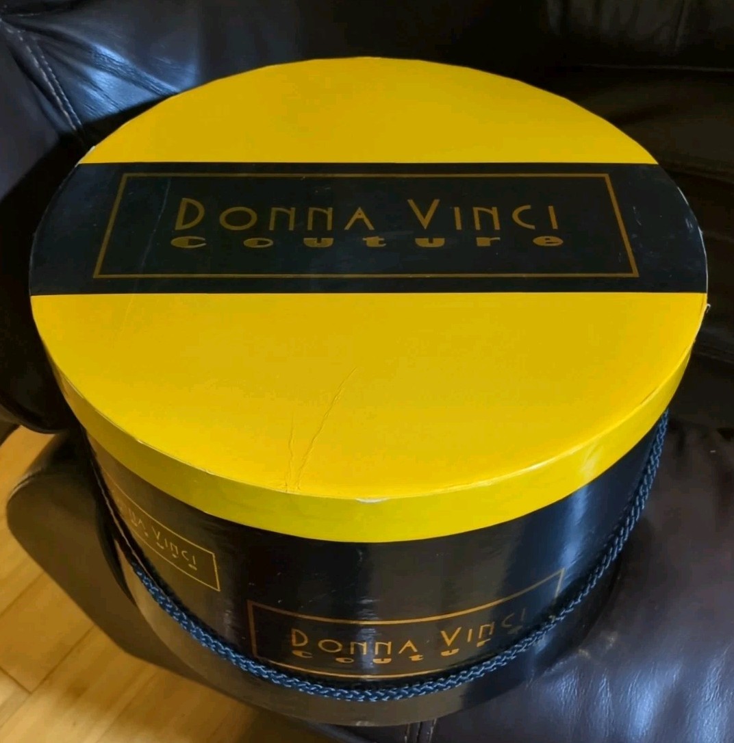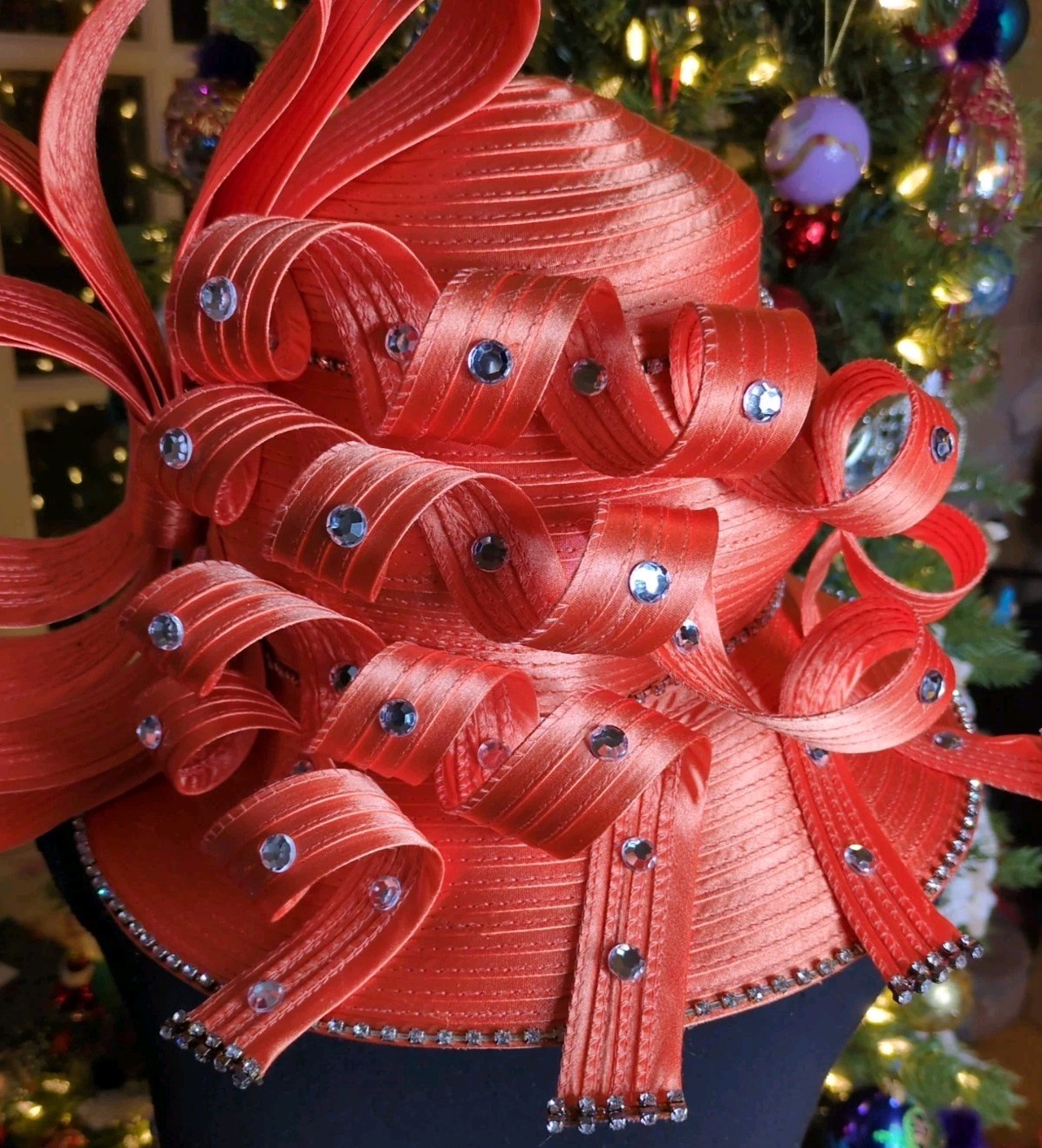 Vintage Donna Vinci Couture Hat Coral Rhinestone, Ribbon Detail With Box