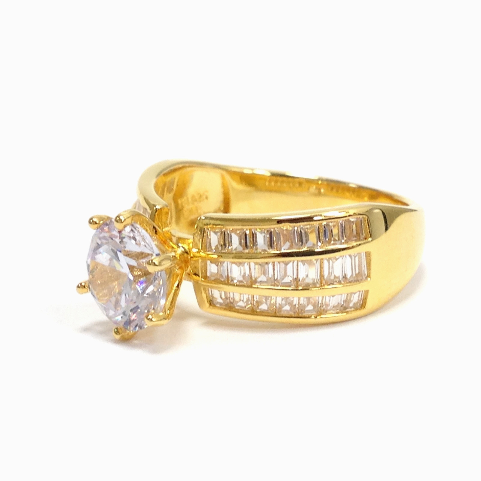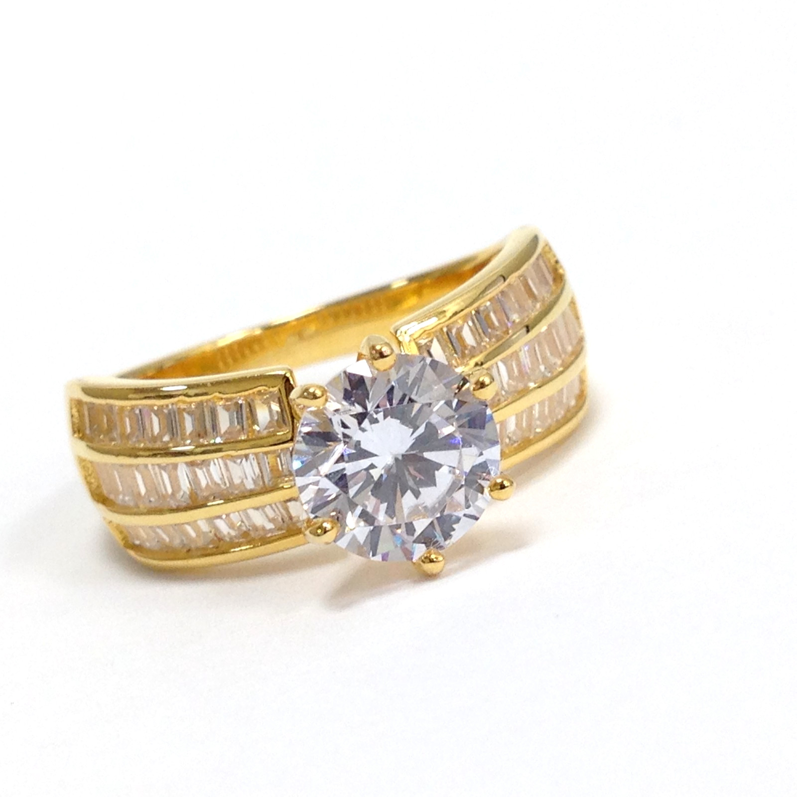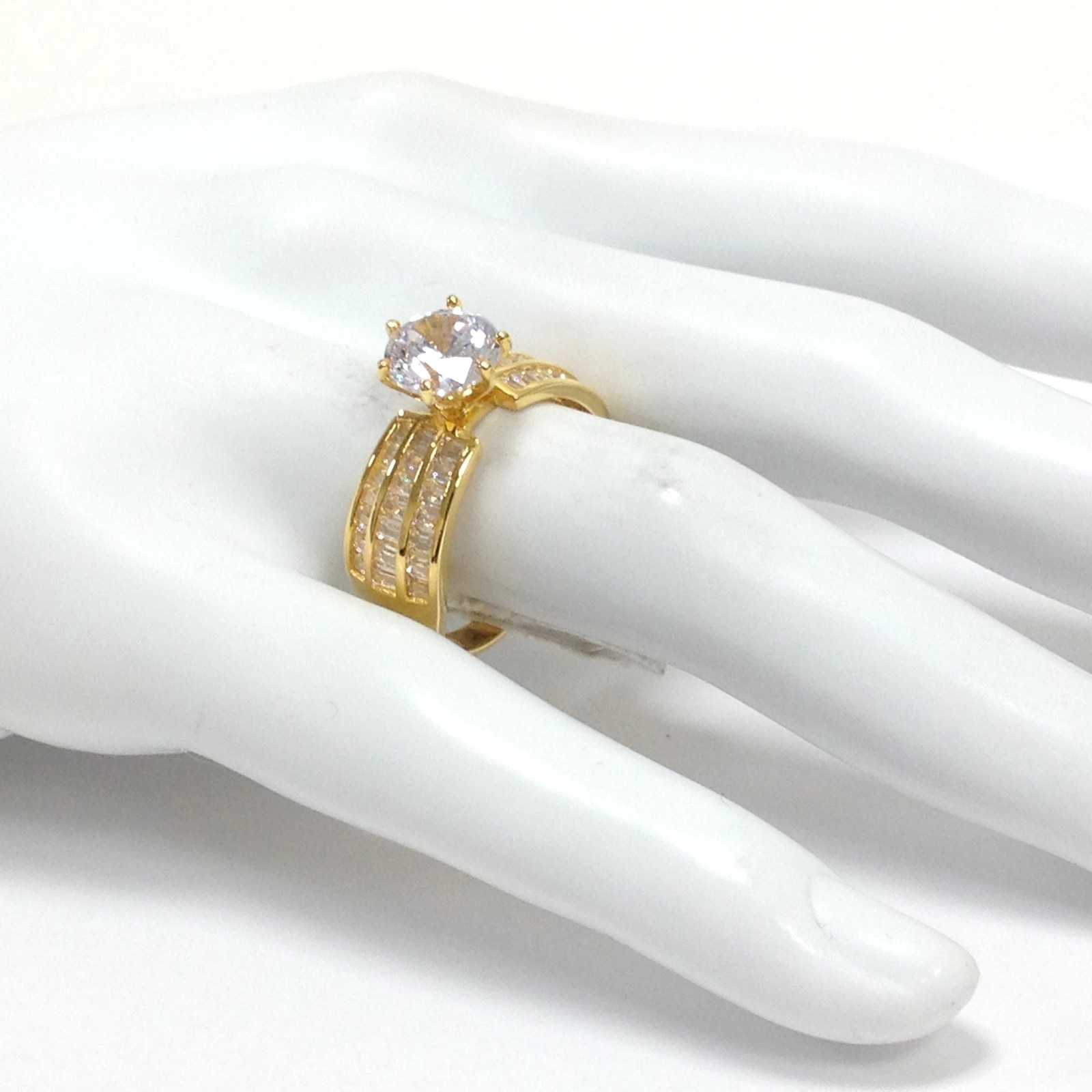 как выглядит YGI signed Gold Vermeil Sterling Silver Round CZ Engagement Wedding Ring Size 9 фото