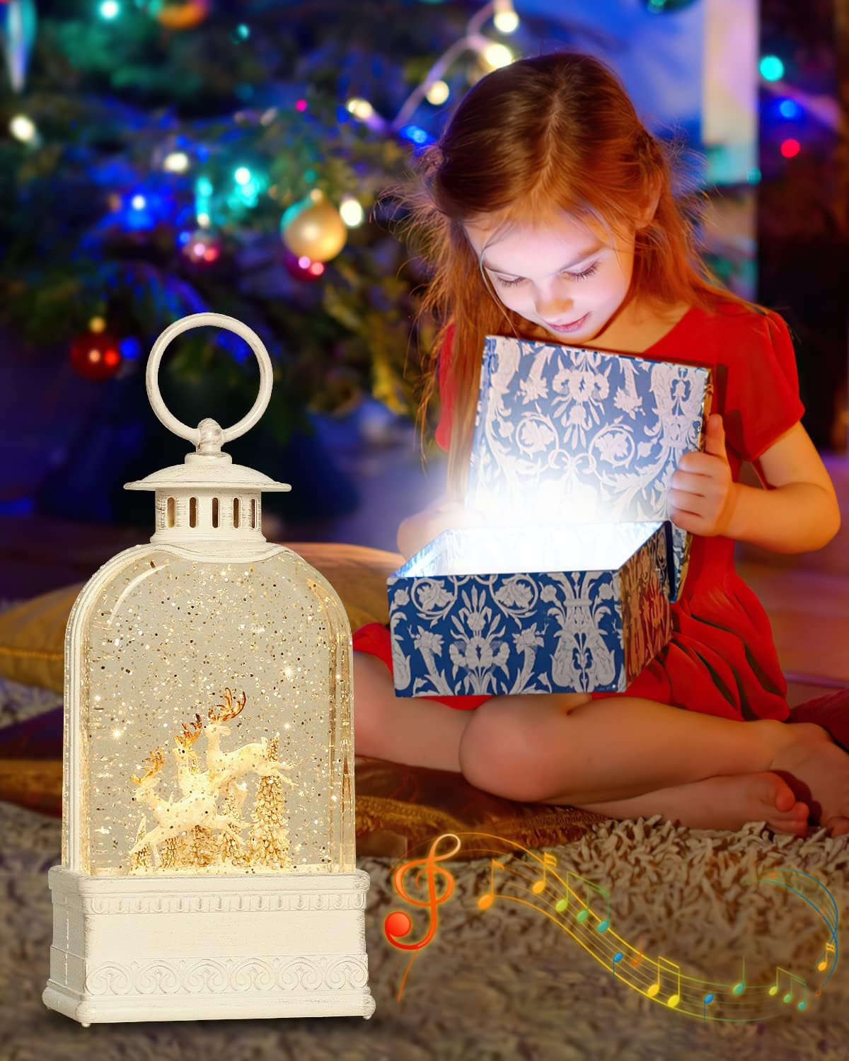 Reindeer Christmas Snow Globes Musical Lightde with 6H Timer Sparkly Swirling Sn