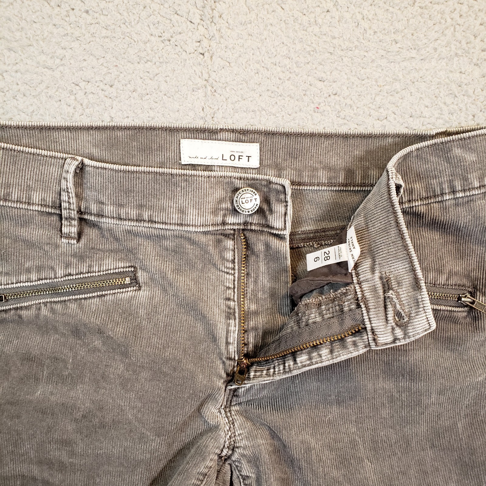как выглядит Ann Taylor Loft Modern Skinny Ankle Pants Womens 6/28 Gray Corduroy Zip Pockets фото