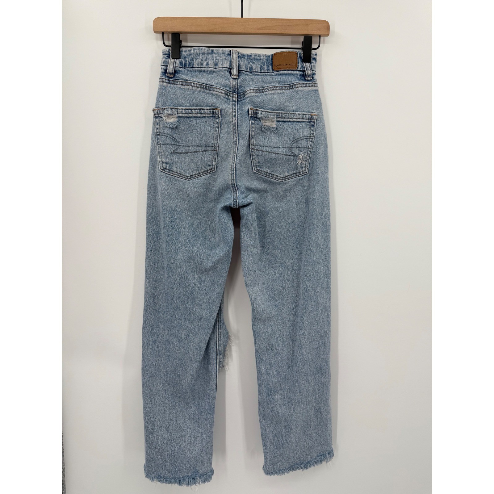 American Eagle Jeans Womens 00 Blue Curvy 90s Straight Leg Ripped Distressed