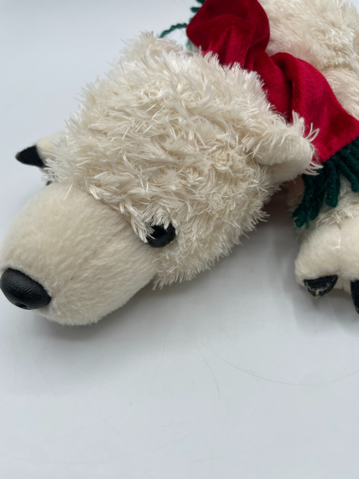 как выглядит FAO Schwarz White Polar Bear Red Scarf Christmas Plush Floppy Shaggy Teddy 12" фото