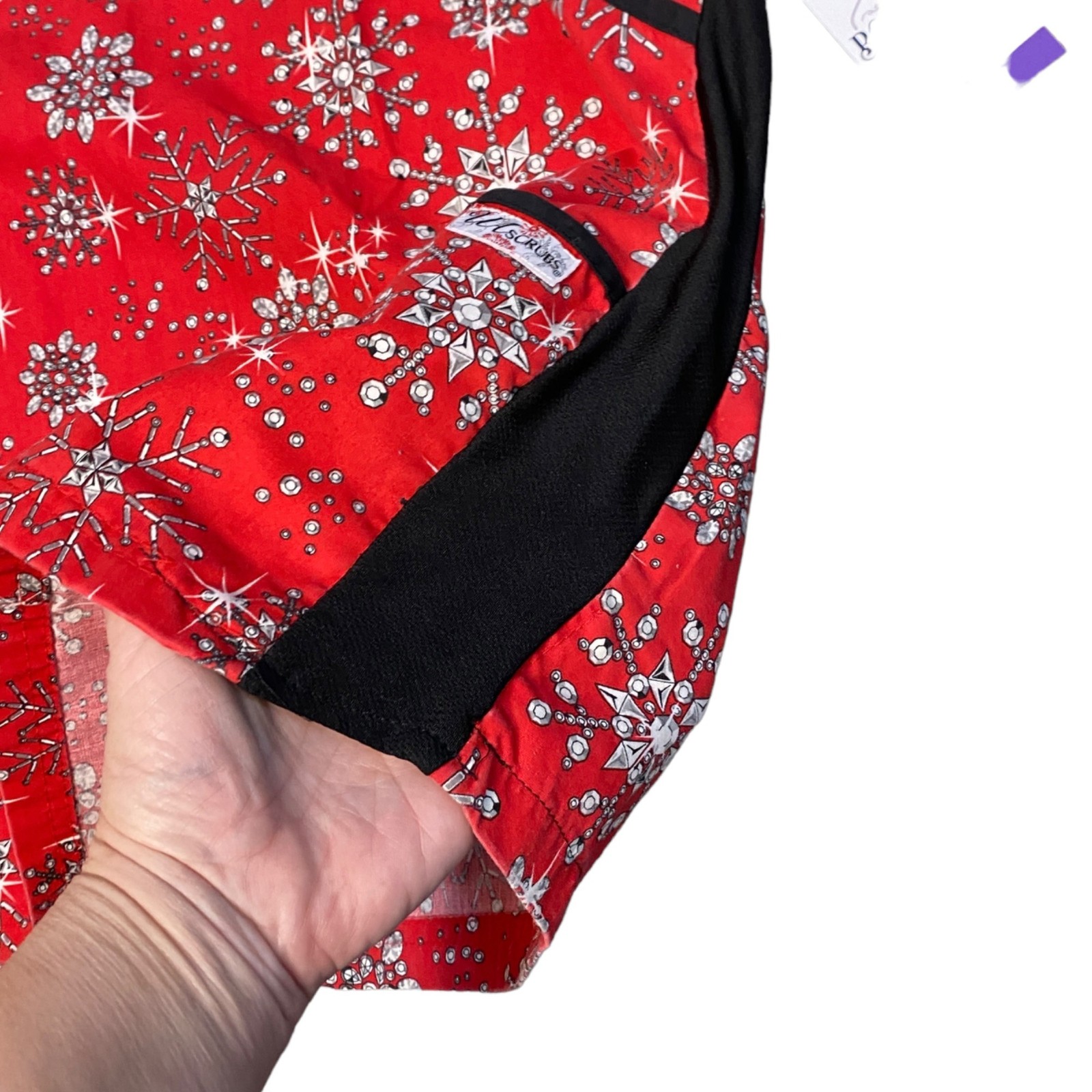 Christmas Scrub Top UA Scrubs L Red Snowflake Nursing Uniform Festive Kitsch