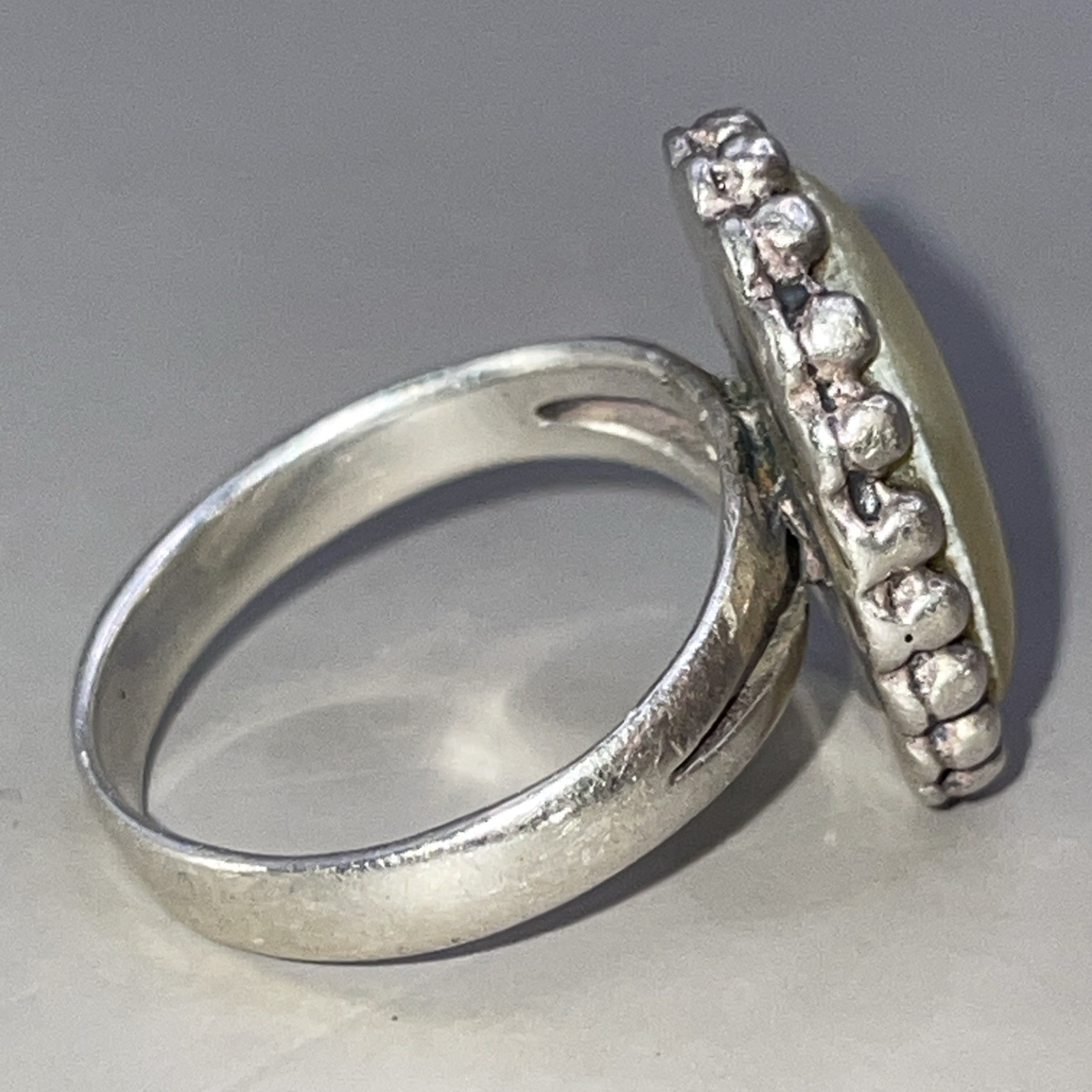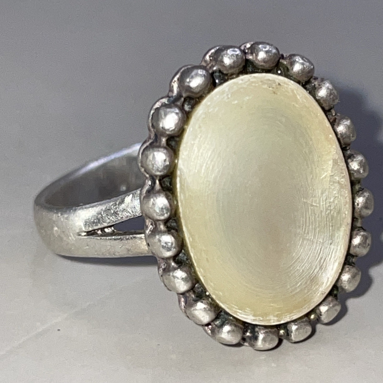 как выглядит Oval MOP Inlay Dot Design Sterling Silver Ring Size 6.5 5.65g фото