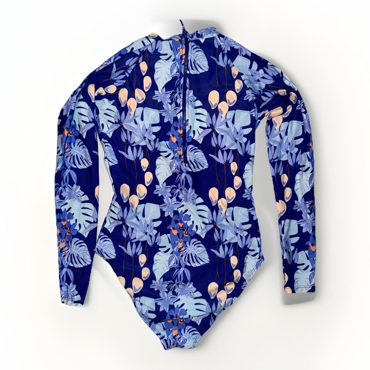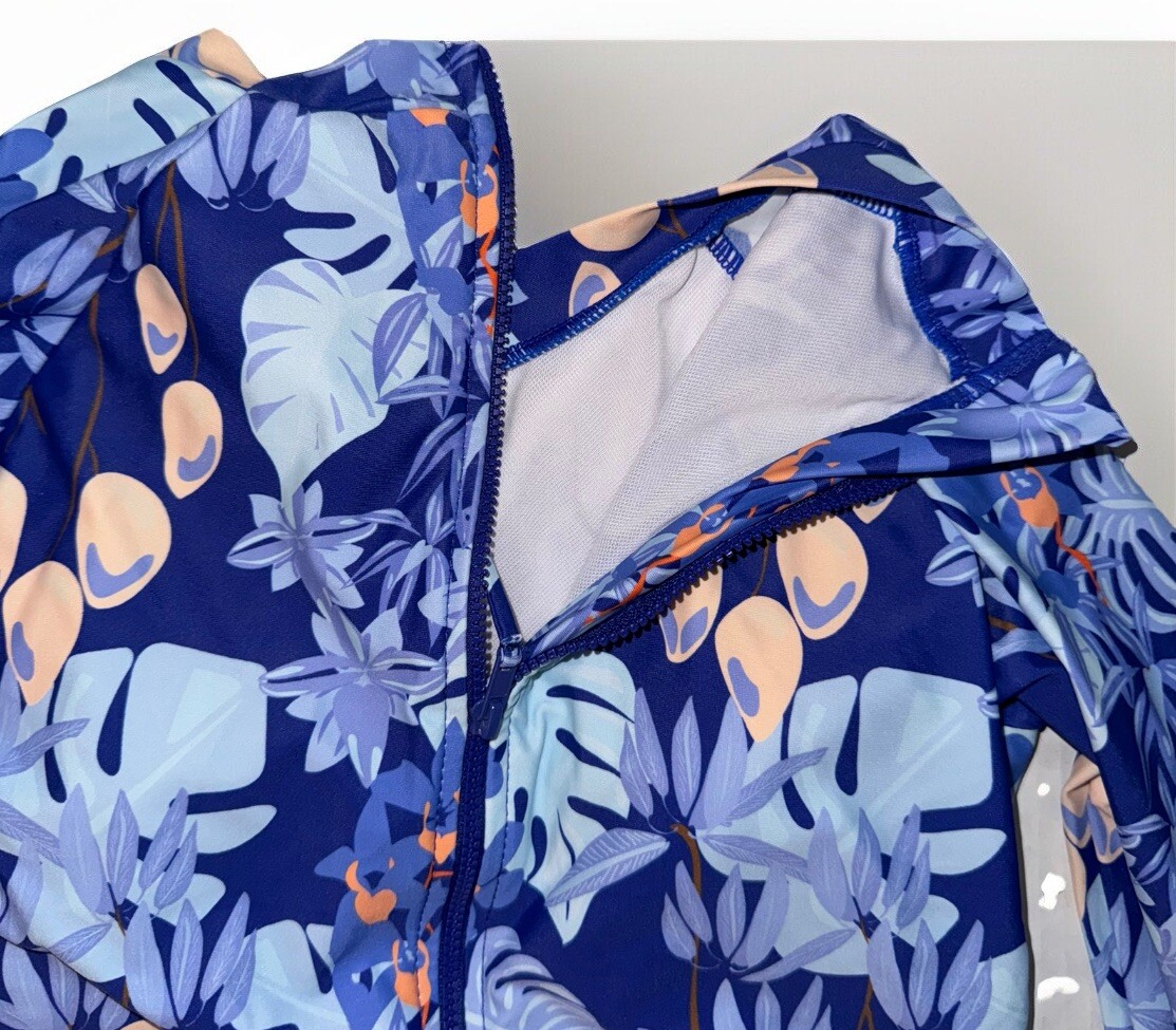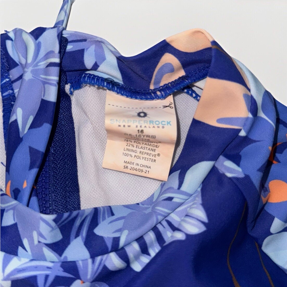 как выглядит Snapper Rock Rash Guard Girls Sz 16 Mango Tango Blue Tropical Long Sleeve Zip Up фото
