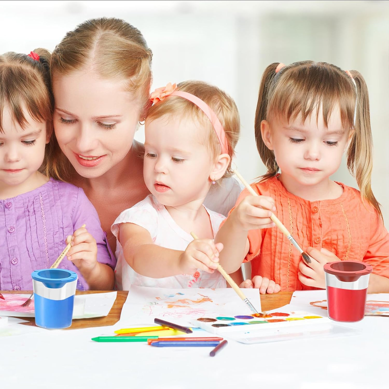 16 Pack No Spill Paint Cups with Lids, Arts and Crafts Supplies for Classrooms,