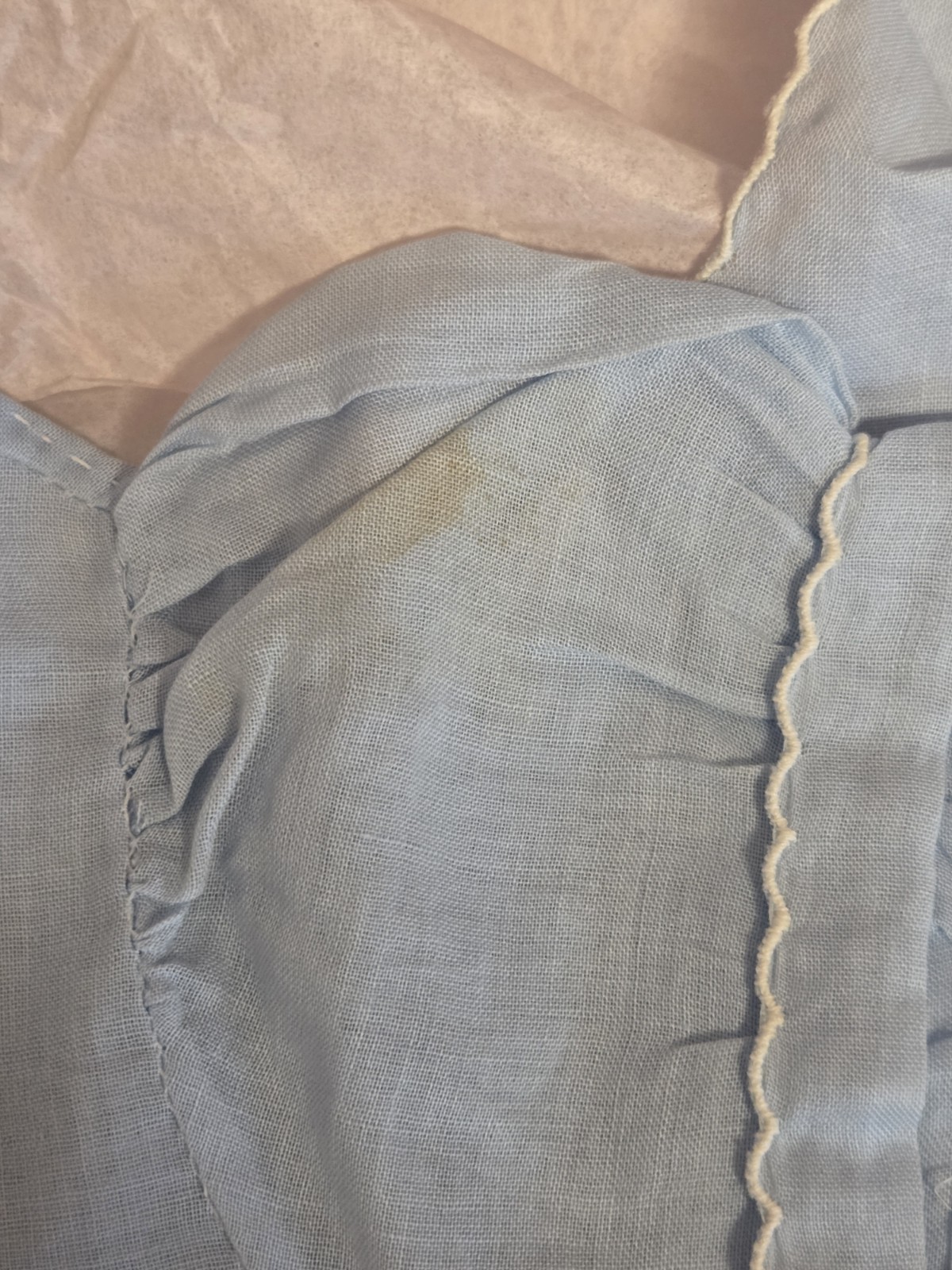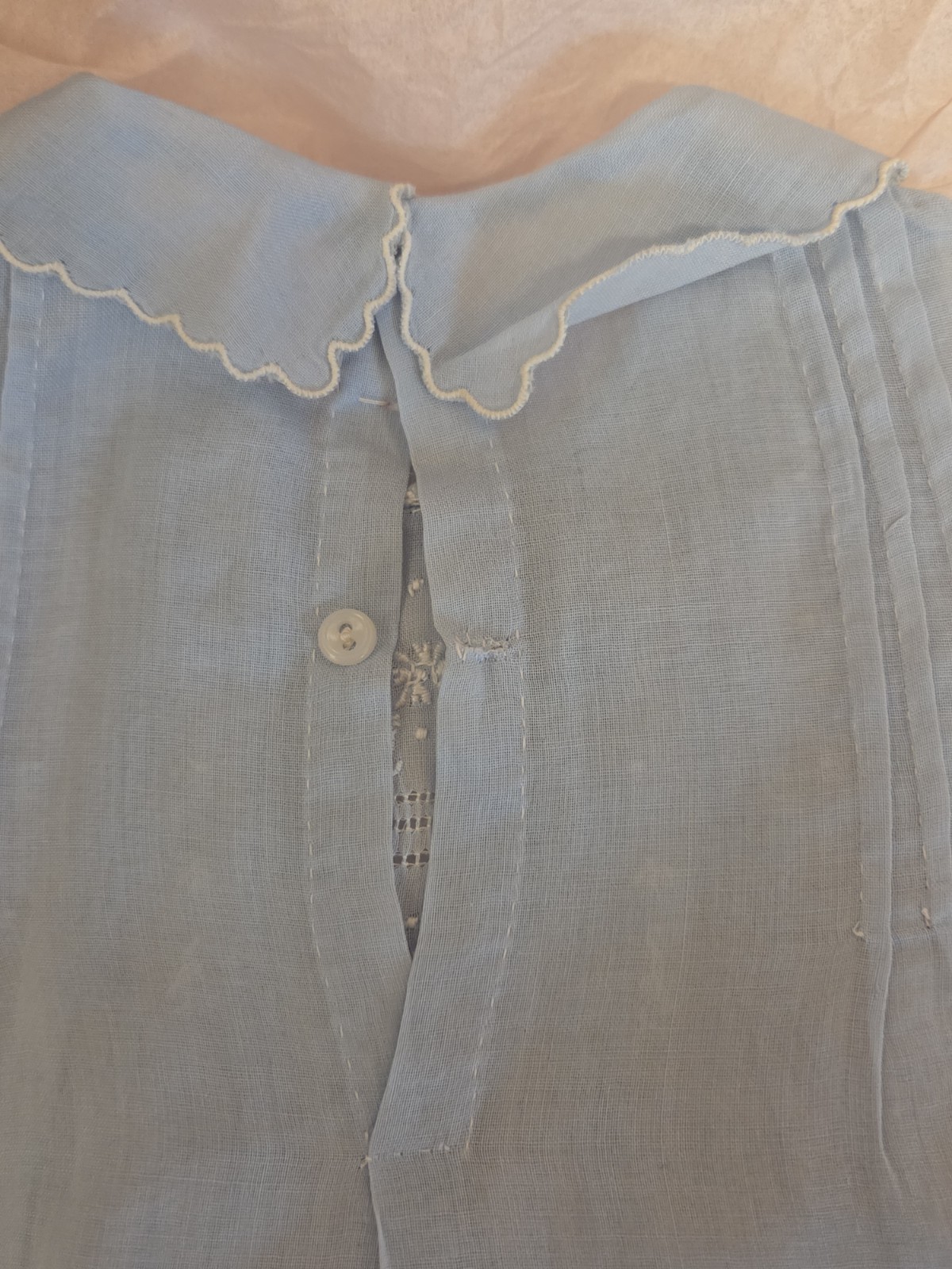 Vintage Handmade Infant Dress Blue w/ Embroidered White Pattern 2 Piece Set