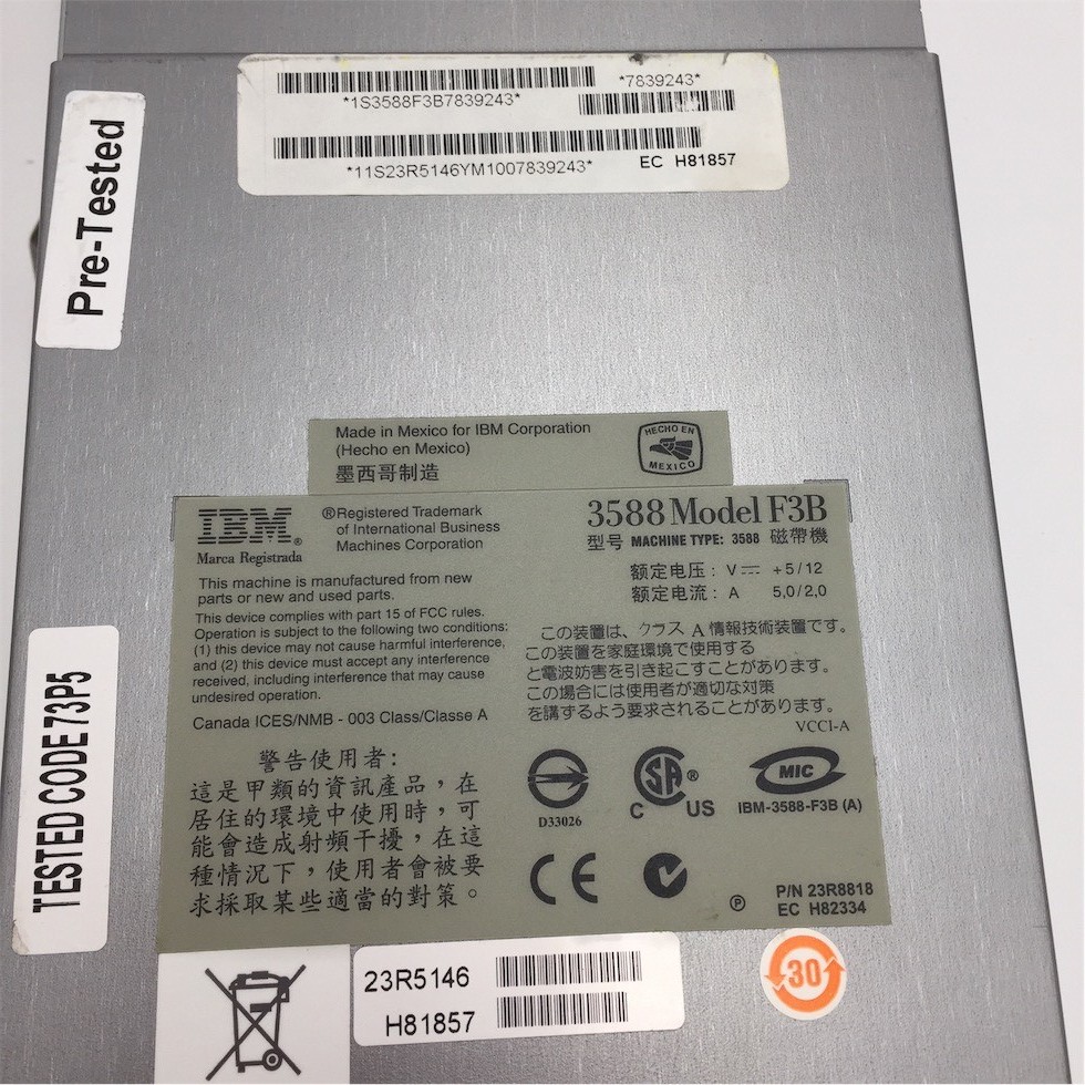 IBM LTO ULTRIUM 3 TAPE DRIVE 400/800GB 4GB 23R5146 3588-F3B