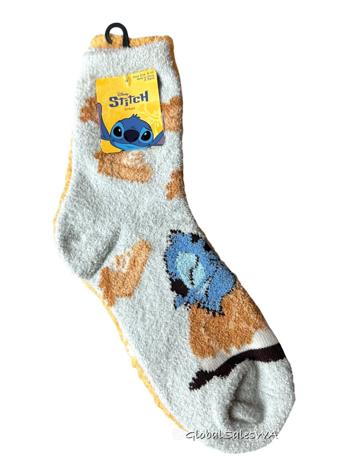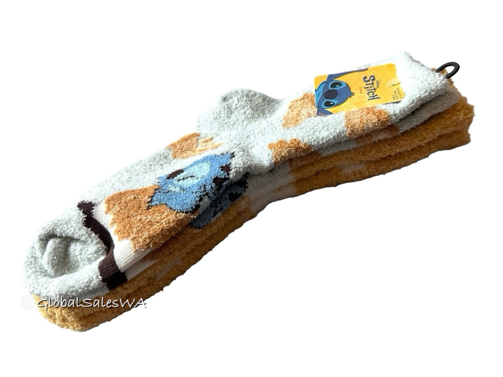 Disney Stitch Fall Winter Fuzzy Soft Warm Fluffy 2 Pairs Socks Shoe Size 4-10