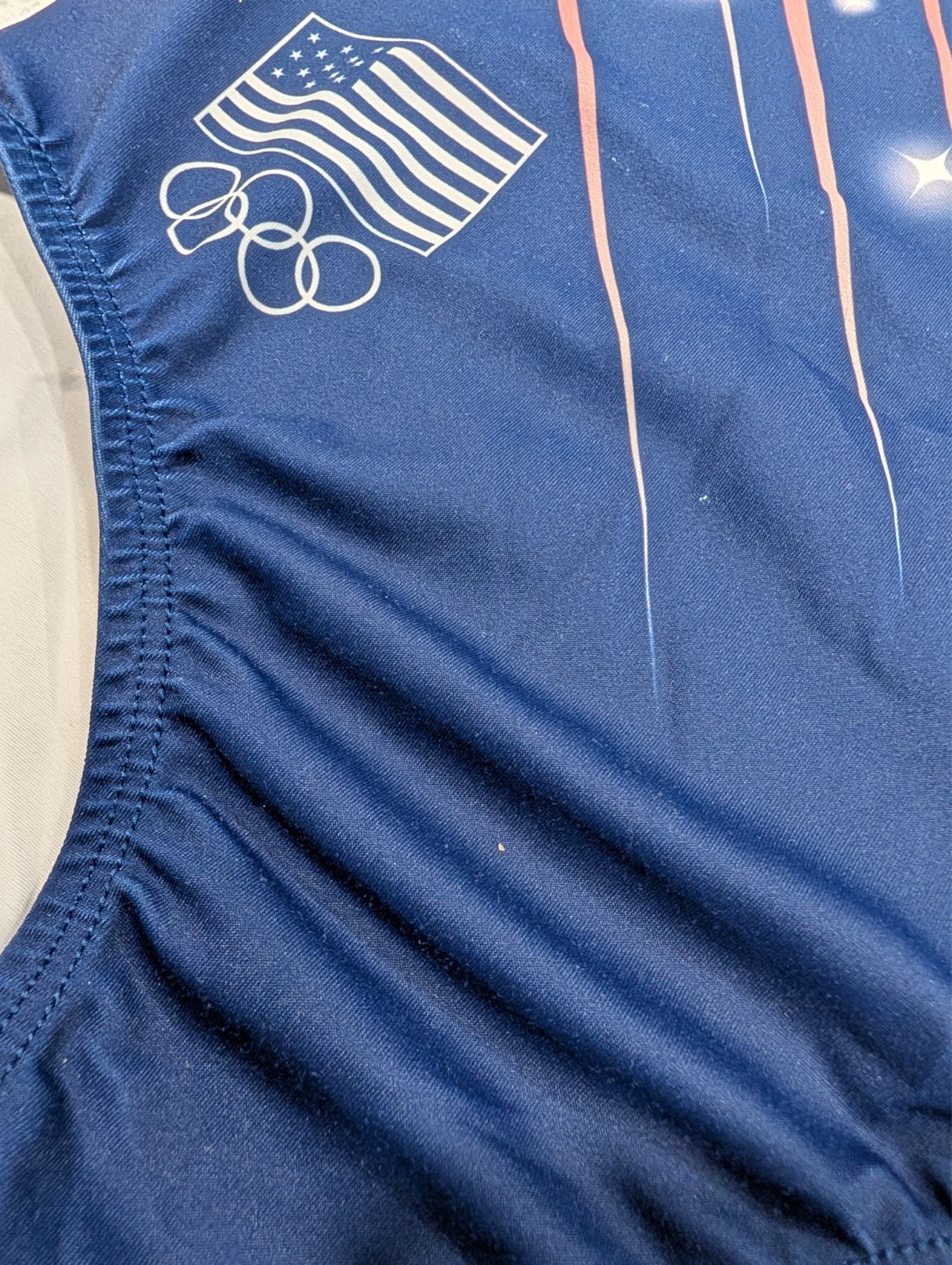 как выглядит USA TEAM GK ELITE Gymnastics Dance Leotard AS Small USA PATRIOTIC Olympic RINGS фото