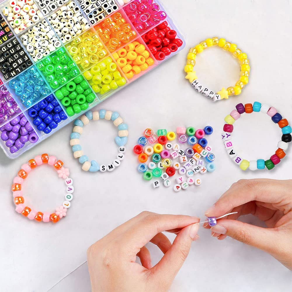 1300 Pcs DIY Childrens Crafts Beads Friendship Bracelet Kit, with Pony Beads Let