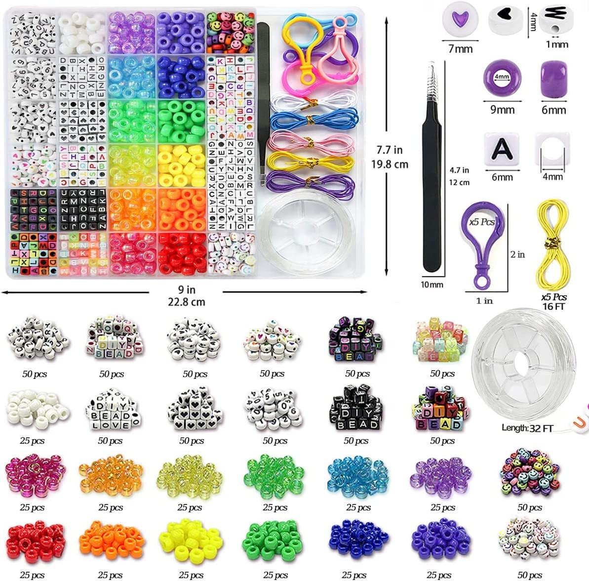 Special Feature: Diverse bead selection, transparent storage box, and various elas