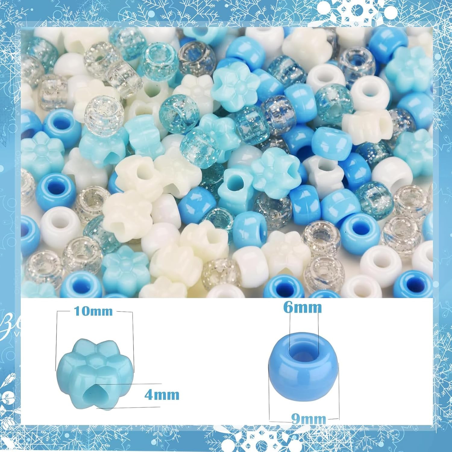Winter Pony Beads 1200Pcs ,Blue and White Pony Beads for Hair Braids, Bracelets