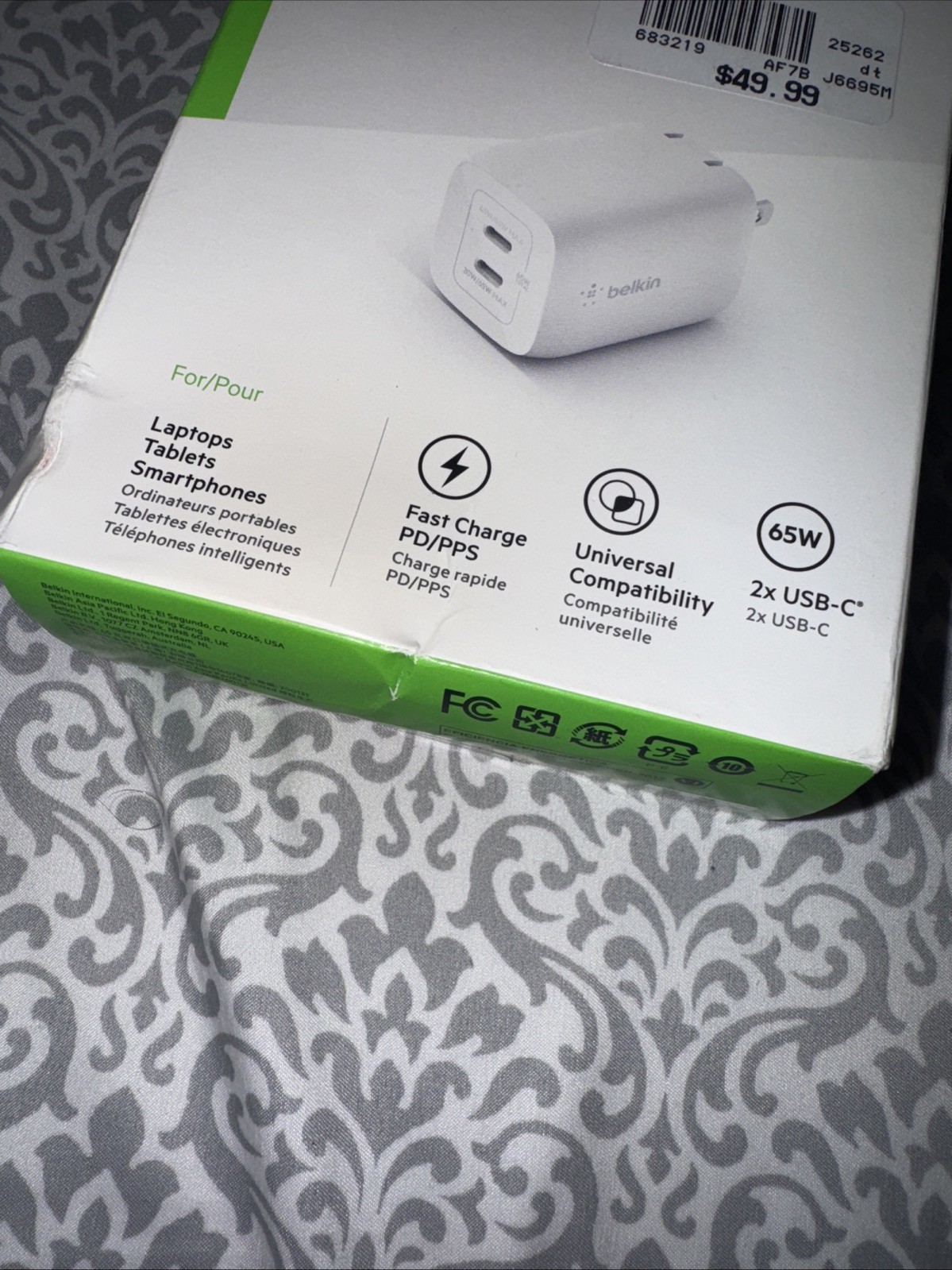 Belkin BoostCharge Pro 65W Dual USB-C Wall Charger Fast PD/PPS Open Box