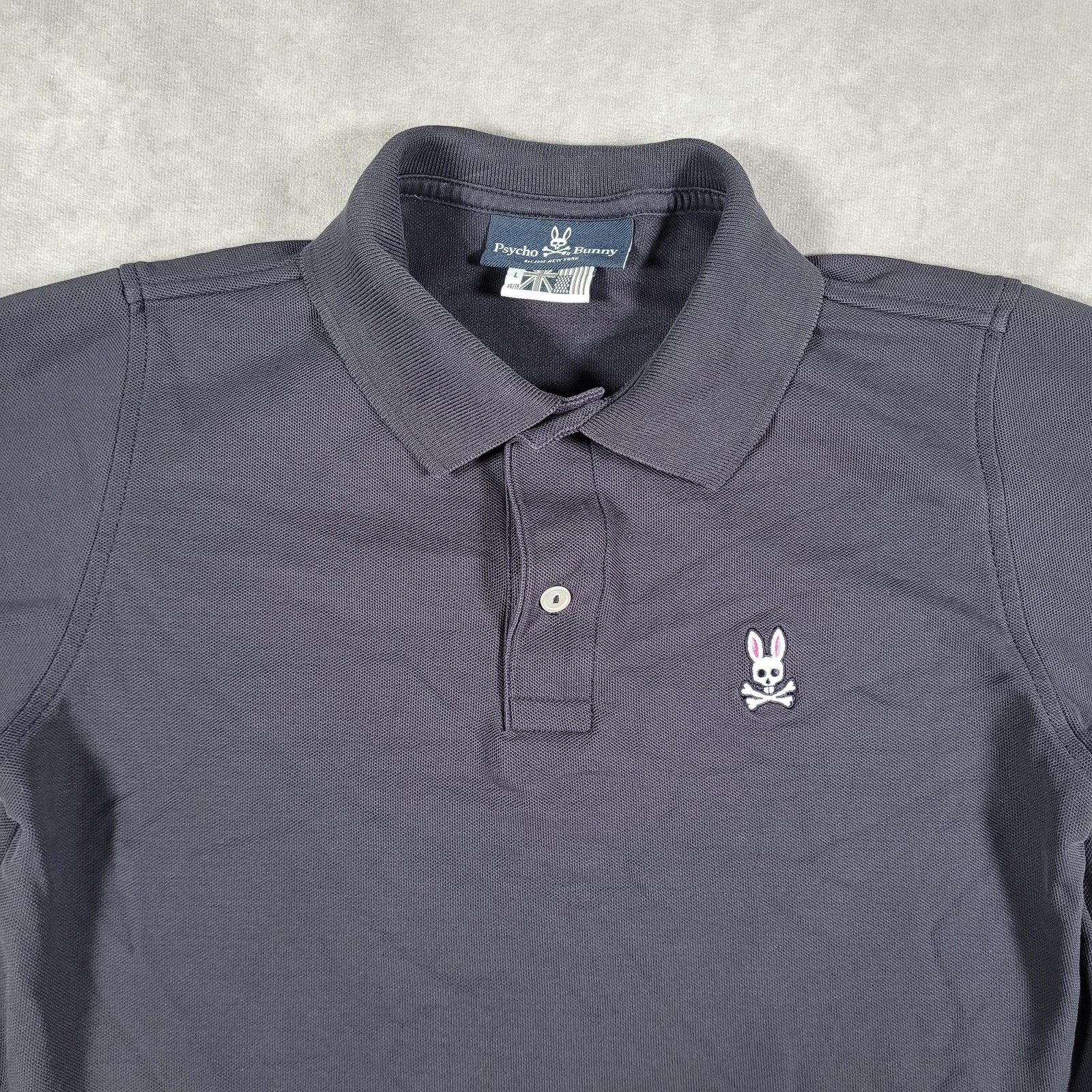 Psycho Bunny Polo Shirt Boys Large 14/16 Gray Pima Cotton Skull Bunny Logo Golf