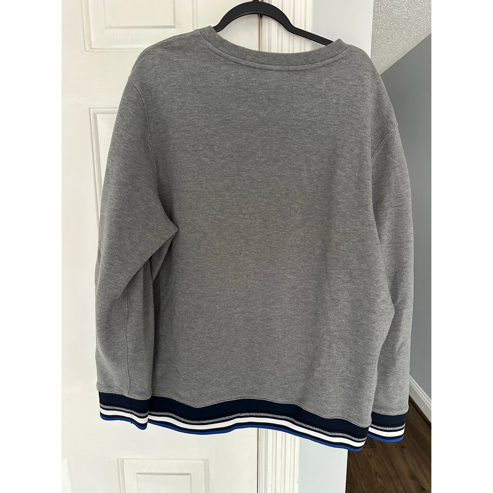 как выглядит EUC Lacoste Crewneck Striped Hem Cotton Sweater Gray Navy White Blue Sz 3XL фото