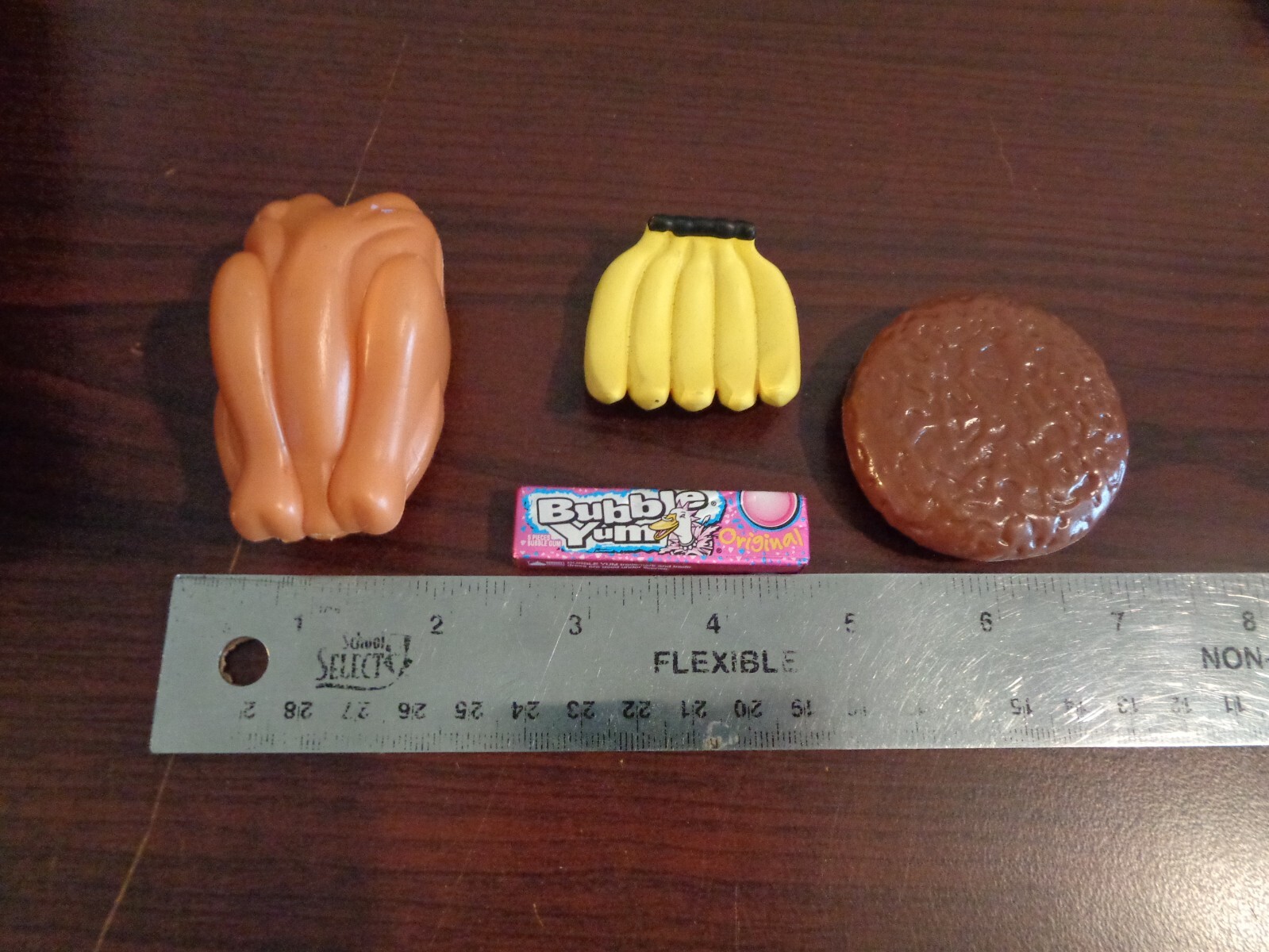 как выглядит PRETEND PLAY DOLLHOUSE MINI FOOD ITEMS BANANAS,BUBBLE YUM,TURKEY,BURGER фото