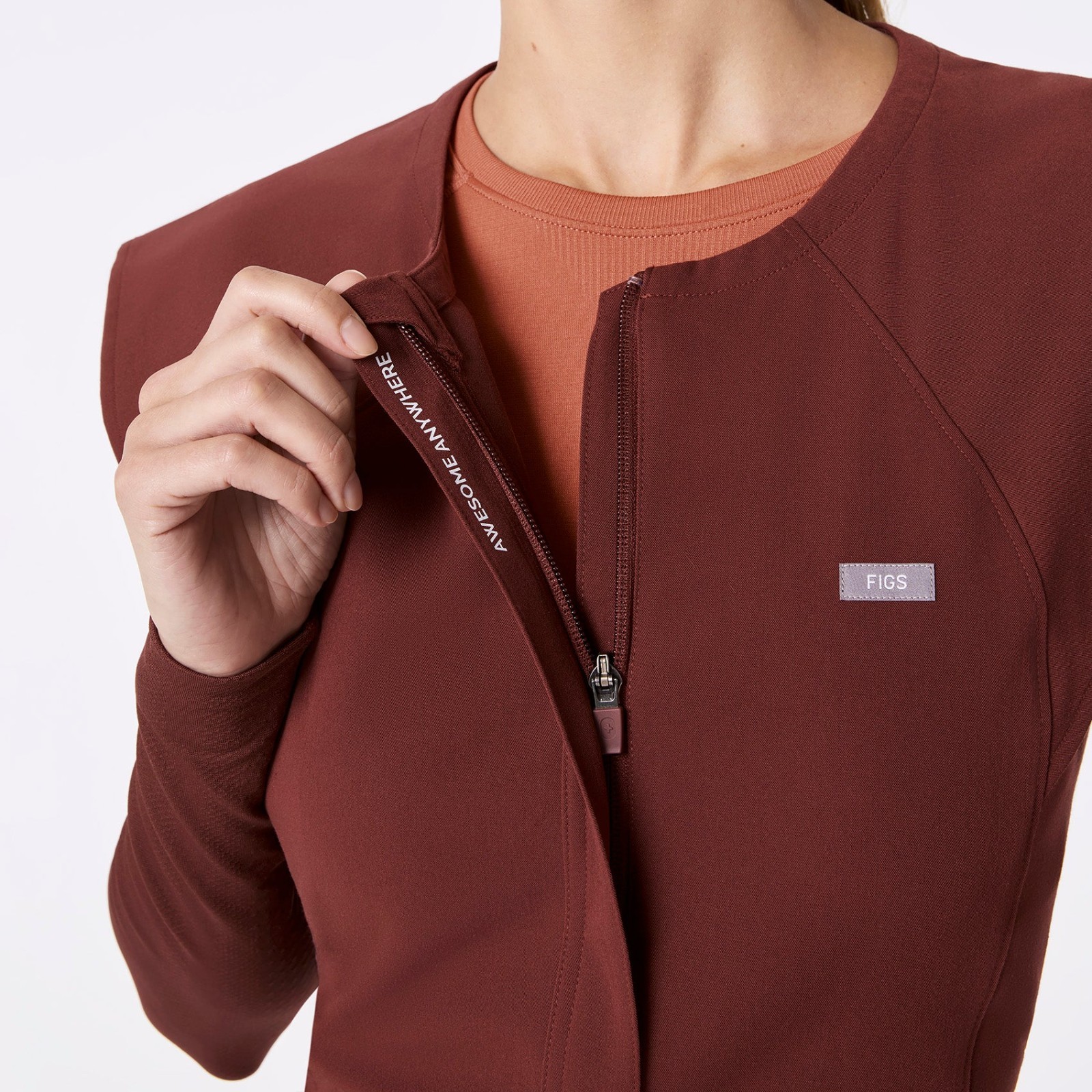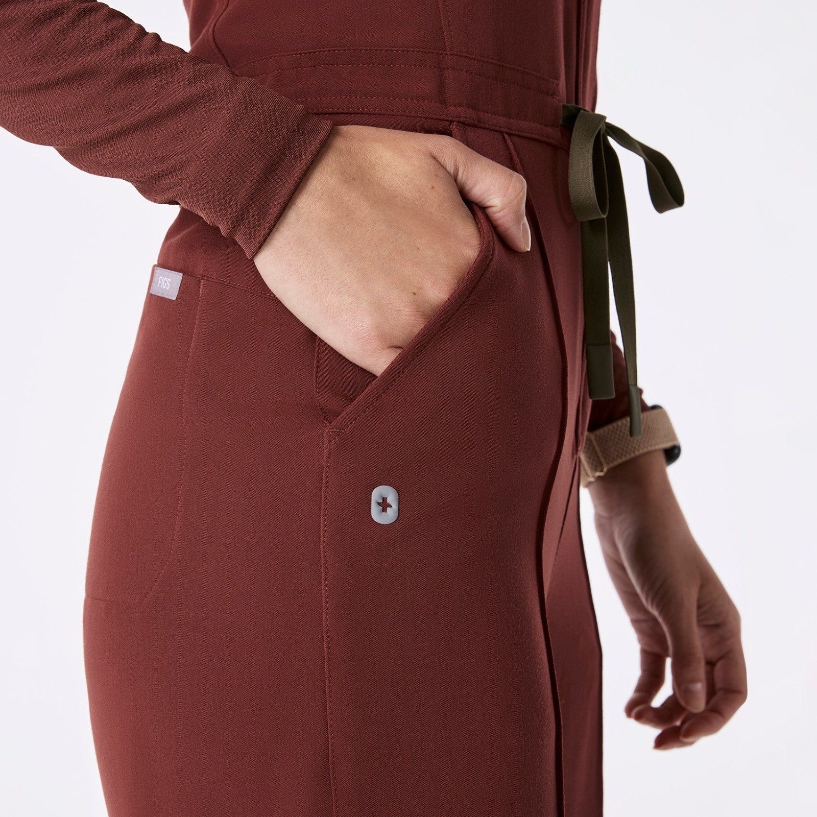 Figs Layton Crewneck Wide Leg ScrubJumpsuit in Walnut, Size Medium