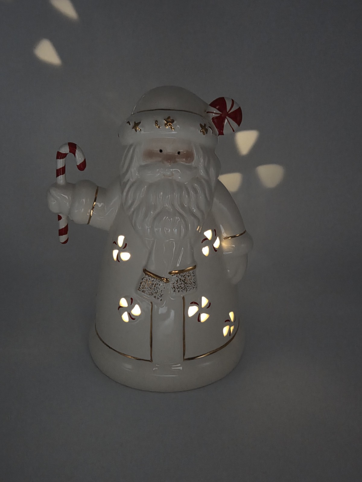 как выглядит Lenox Seasons Sparkle Lit Santa Claus Figurine Candy Cane Peppermint 6.75" фото