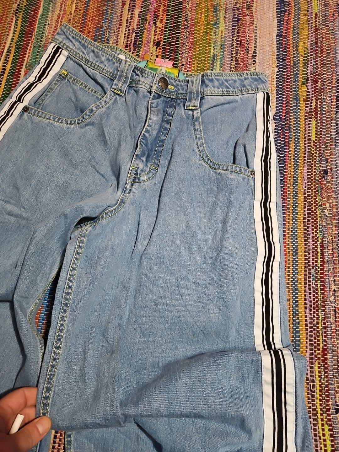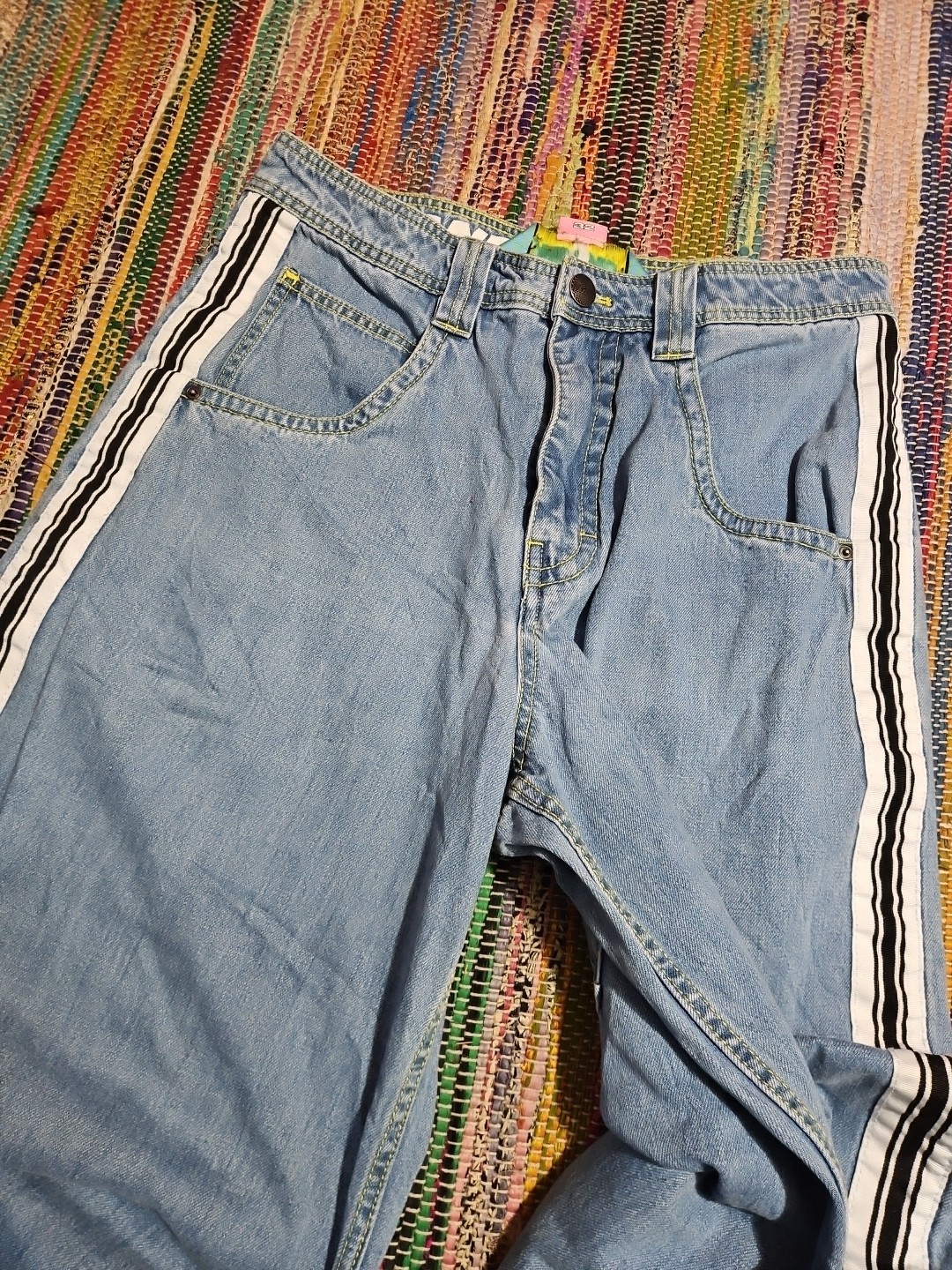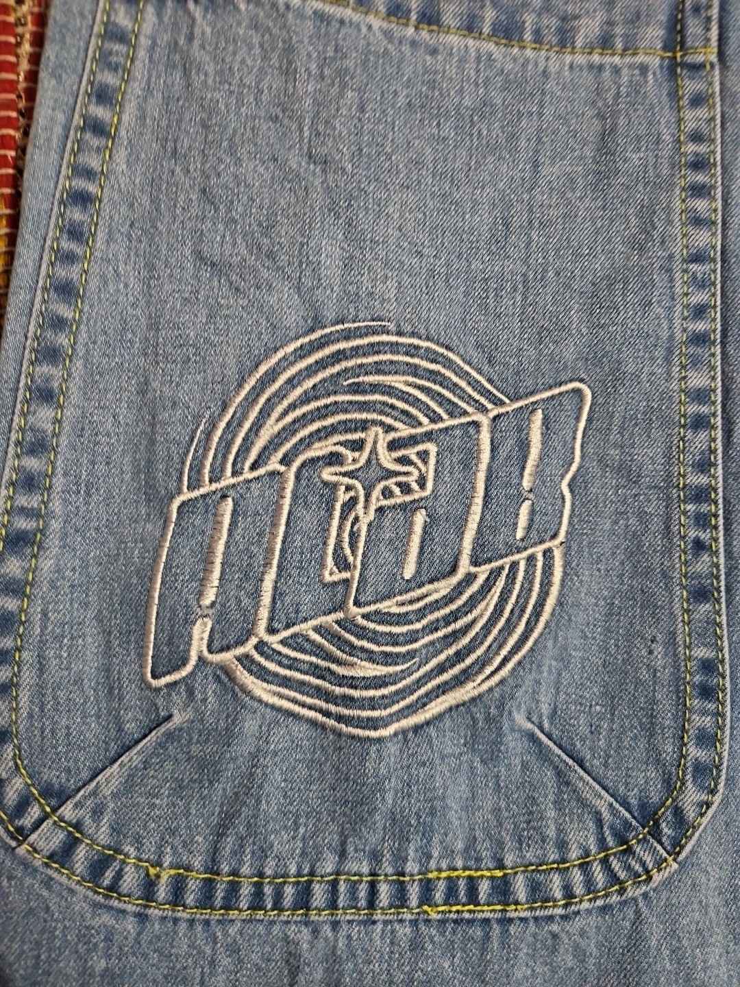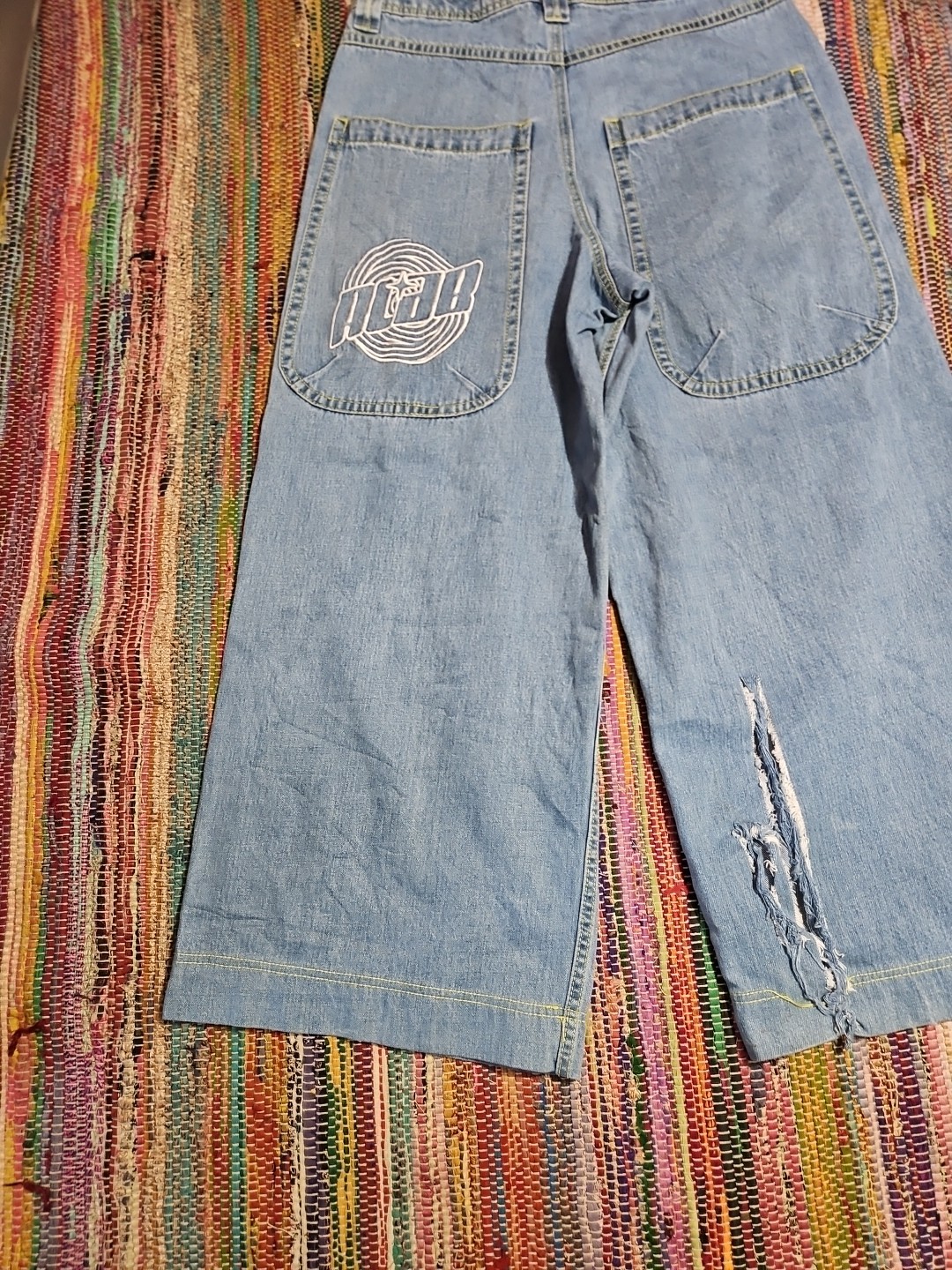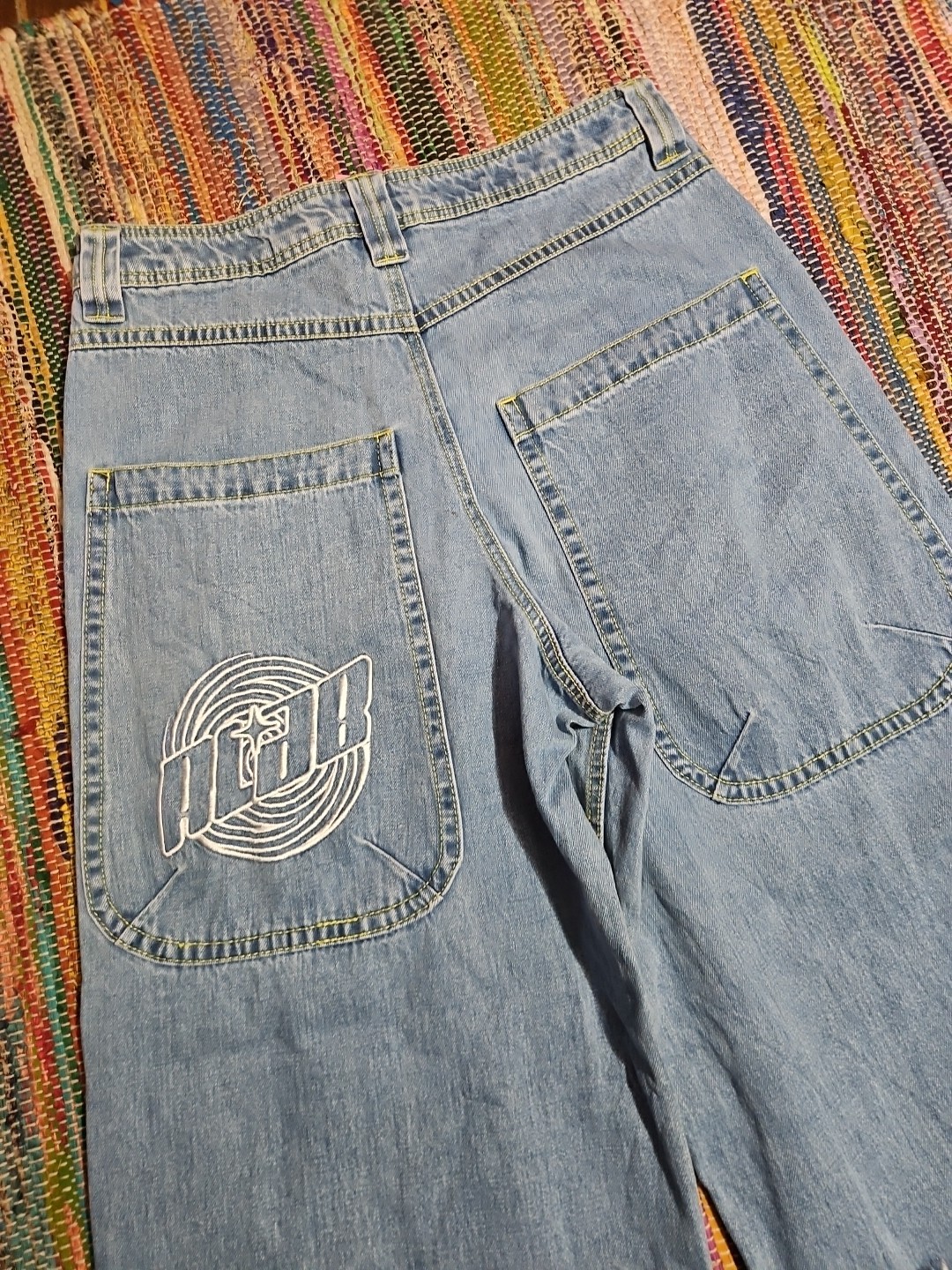 как выглядит Flawed Alab Wide Leg Baggy Jeans Embroidered Mega Rave Skate JNCO Style 32 32x27 фото