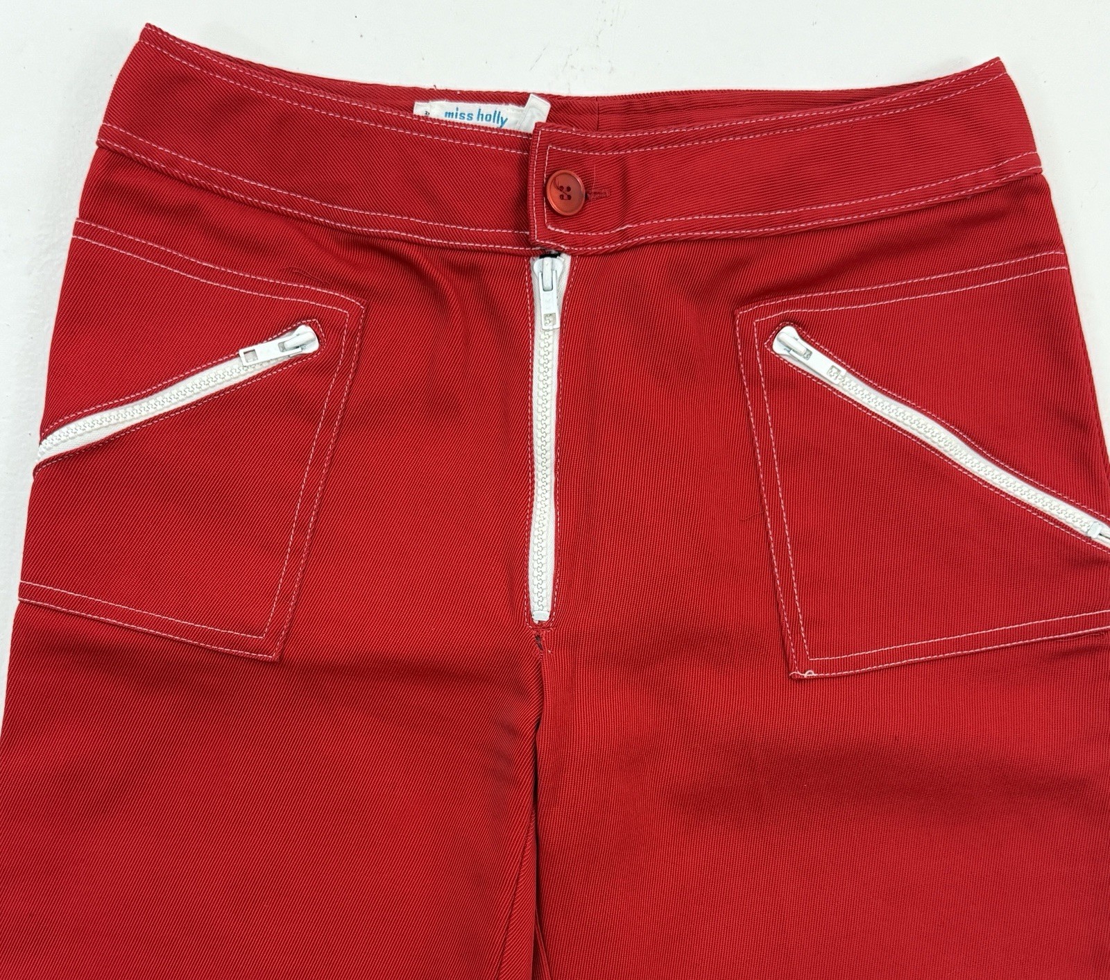 VTG Miss Holly Flare Leg Red Sailor Pant White Trim Zippers High Waist 28x30
