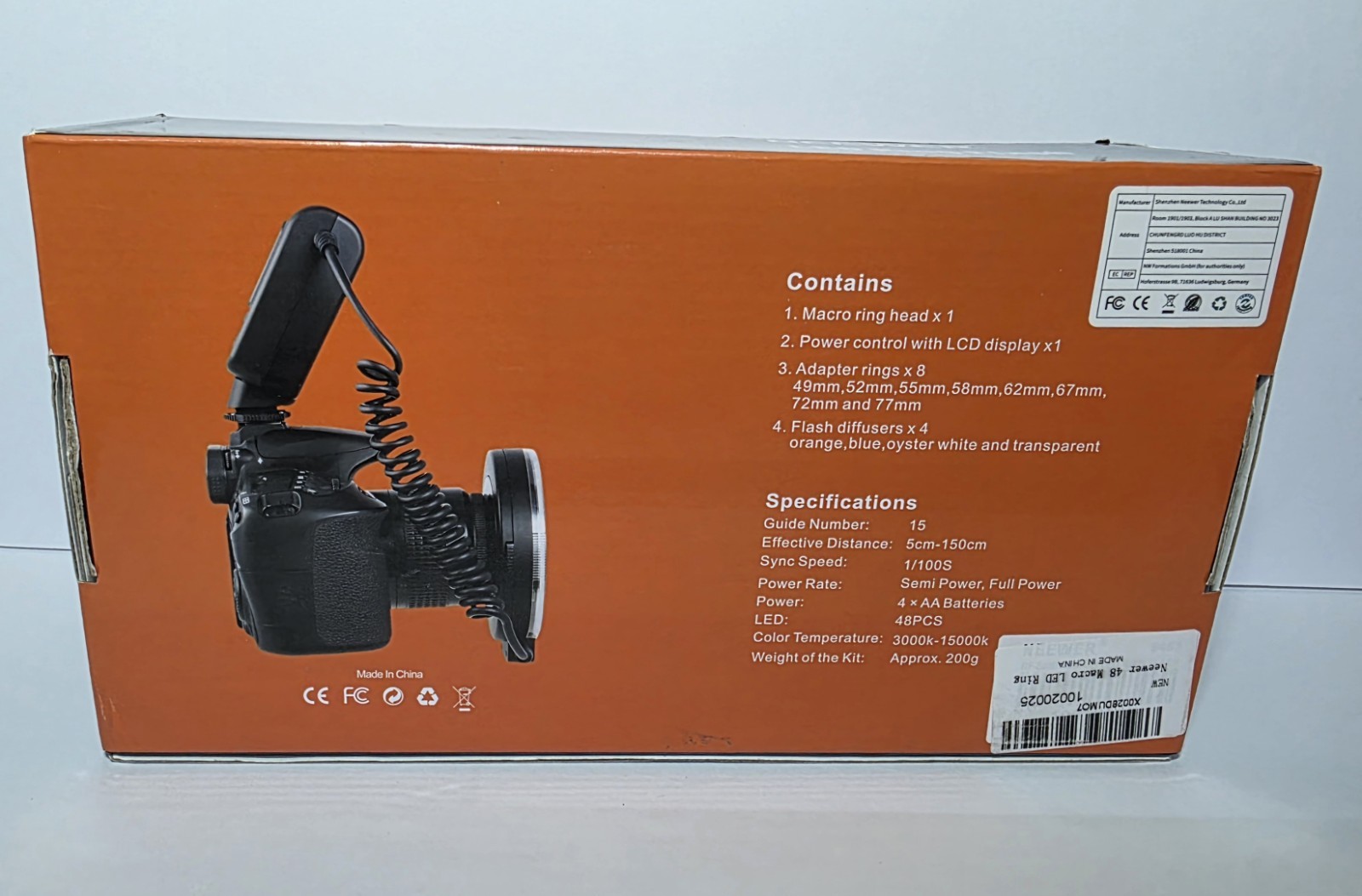 NEEWER 48-LED Macro Ring Flash Bundle With Adapter Rings Diffusers Open Box