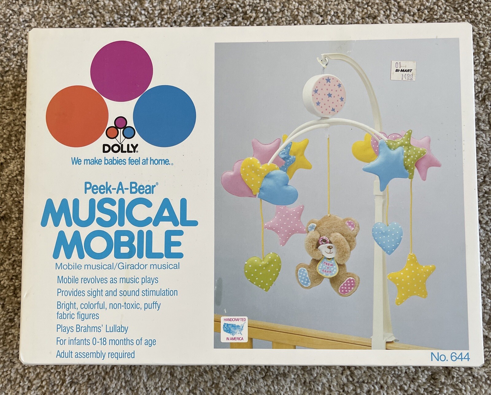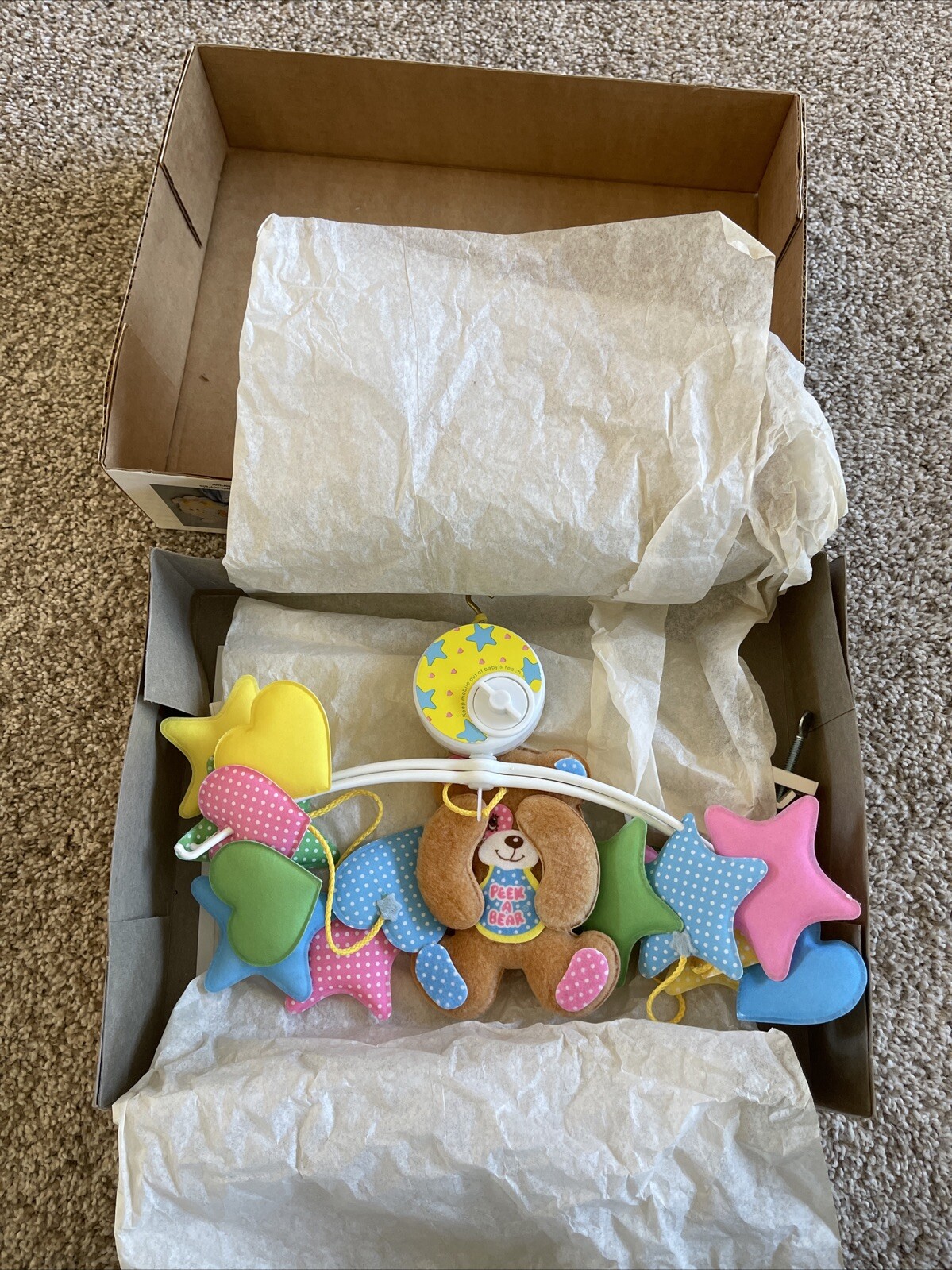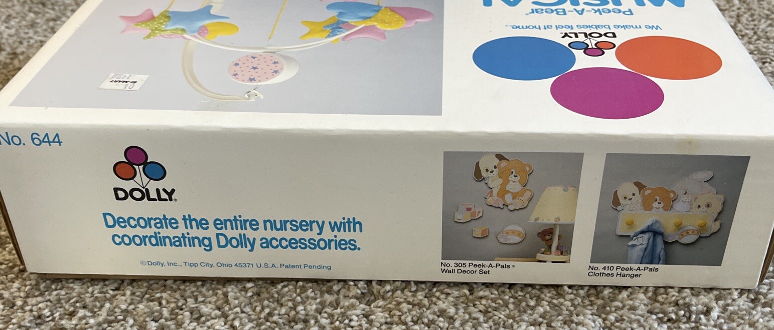 VTG 80s NEW Dolly Peek-A-Bear Crib Musical Mobile Baby Nursery Star Wind-up USA
