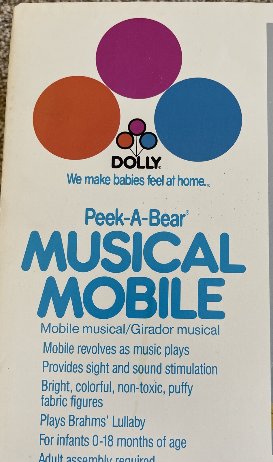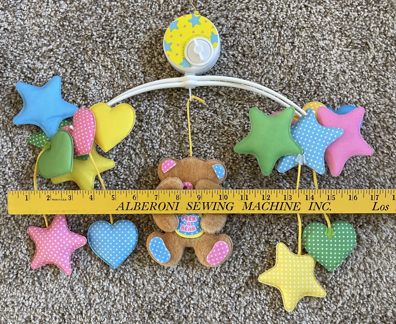 как выглядит VTG 80s NEW Dolly Peek-A-Bear Crib Musical Mobile Baby Nursery Star Wind-up USA фото