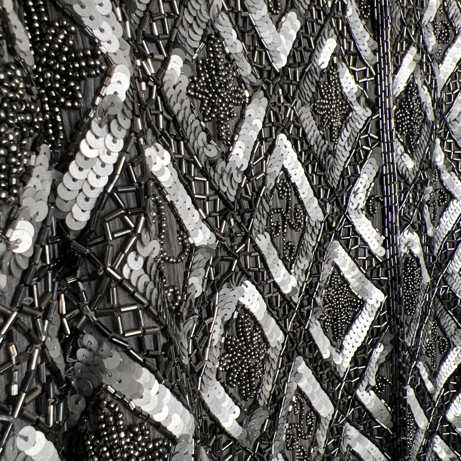 как выглядит SCALA Black VTG 100 Silk Beaded Sequin Long Sleeve Jacket Holiday, Old Money фото