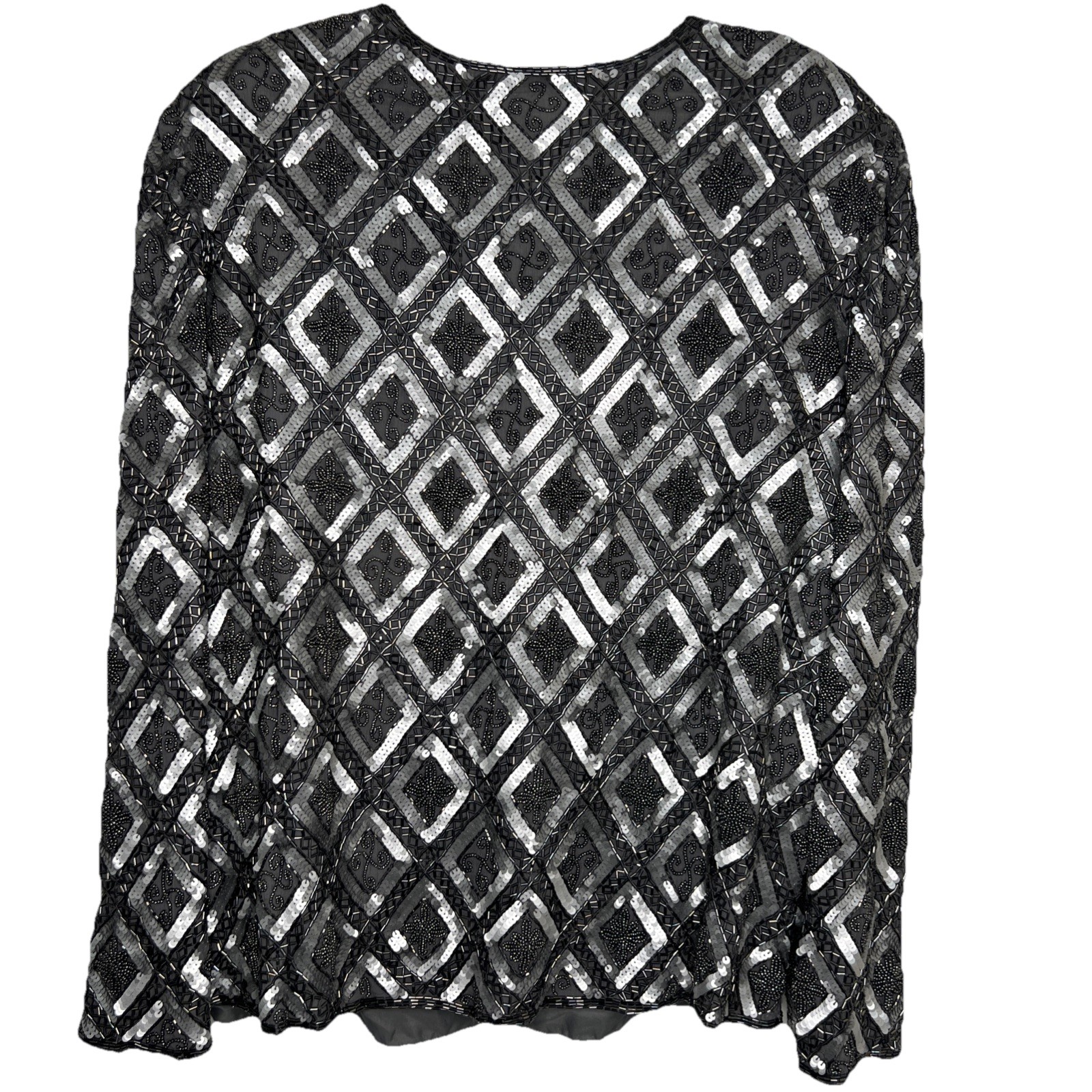 SCALA Black VTG 100 Silk Beaded Sequin Long Sleeve Jacket Holiday, Old Money